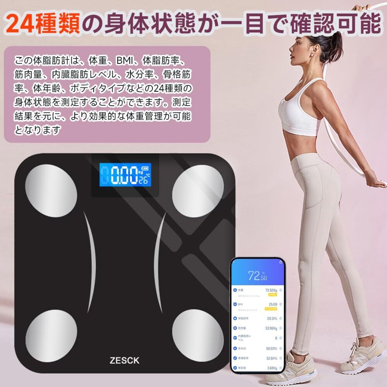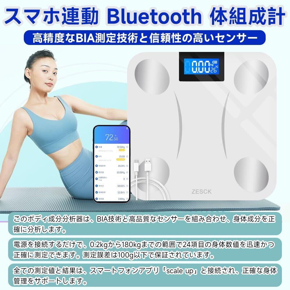 体重計 体脂肪計 体重計 スマホ連動 Bluetooth 体組成計 ヘルスメーター 対組成計 weight scale スケール 高精度 自動ON/OFF バックライト付 180kgまで対応 ボディスケール 強化ガラス コンパクト 軽量アプリ対応/体脂肪率/BMI/骨格筋率/基礎代謝量/水分量/体年齢/内臓脂肪レベル 日本語取扱説明書 日本語App USB充電式 ホワイト