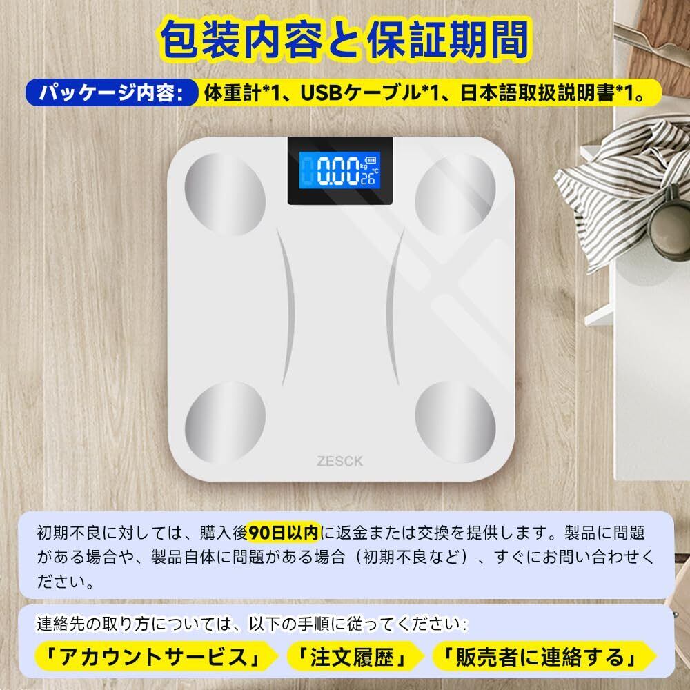 【安心のサポート体制&パッケージ内容】セット内容:体組成計本体×1、USB充電ケーブル×1、日本語取扱説明書×1。ご購入後90日以内の初期不良には、返金または交換にて対応いたします。万が一製品不具合がございましたら、の「アカウントサービス」→「注文履歴」→「販売元に連絡する」より、お気軽にお問い合わせください。