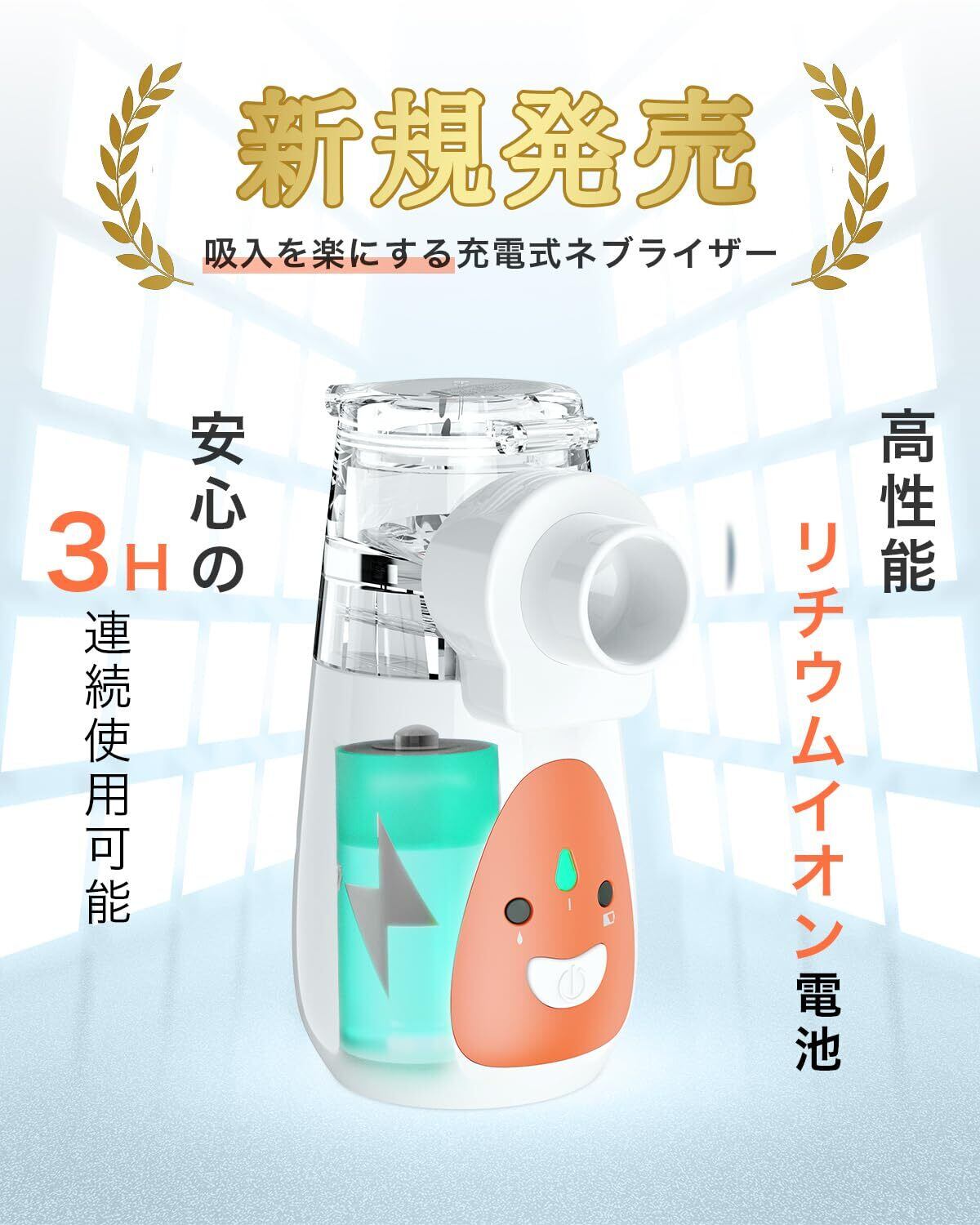 【パケット内容・安心】パッケージ内容:ネブライザー本体*1、薬液カップ*1、マスク(子供用)*1、マスク(大人用)*1、マウスピース*1、メッシュ部カバー*1、収納袋*1、クイックマニュアル*1、取扱説明書*1、USBケーブル*1。本製品には1年間の期間があります。万が一の商品に不具合などが発生したら、までご連絡いただきますようお願い申し上げます。その際は、迅速にご満足いただけるまで対応させていただきます。本製品は充電用のACアタブターがついていないため、市販のUSBタイプのACアタブターを別途購入する必要がございます。充電できないの原因となりますので、必ずPSEマークのついているACアタブターをご利用ください。