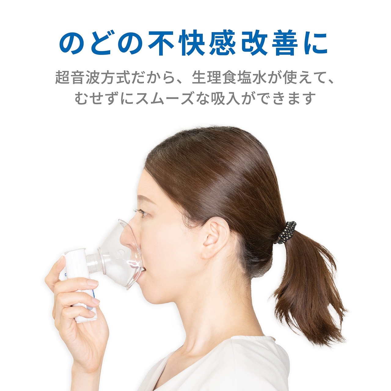 ■【パワフルな噴霧力で薬液をしっかり吸入!】超音波メッシュ技術を採用し、薬液を微細な霧状にします。これにより、薬液の有効成分が呼吸と共に気管支や肺に直接届き、効果的な吸入が実現します。特に、鼻やのどに優しい設計となっており、使用時の快適さを追求しました。
