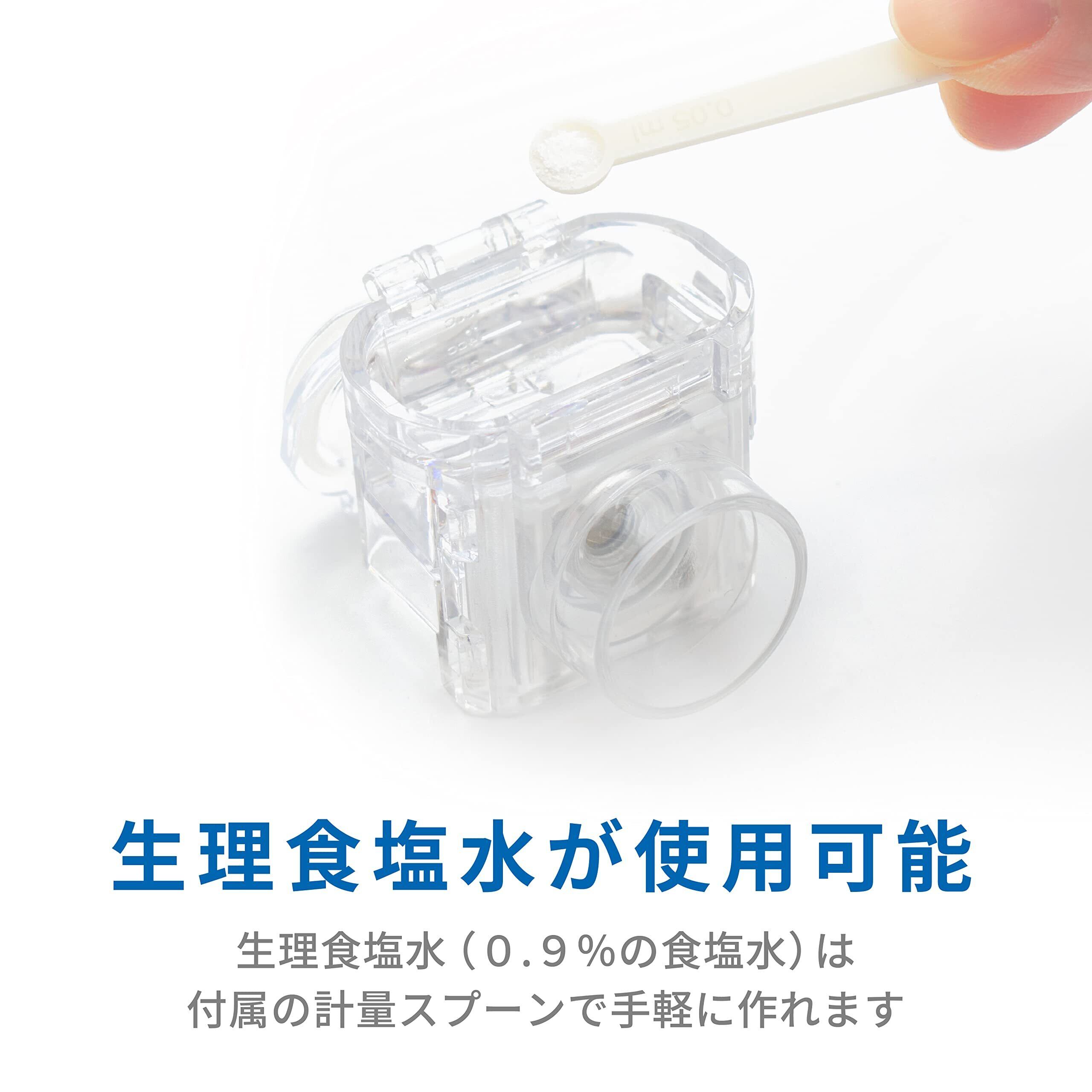 生理食塩水が使えるので、むせずに気持ちよく吸入ができます。
