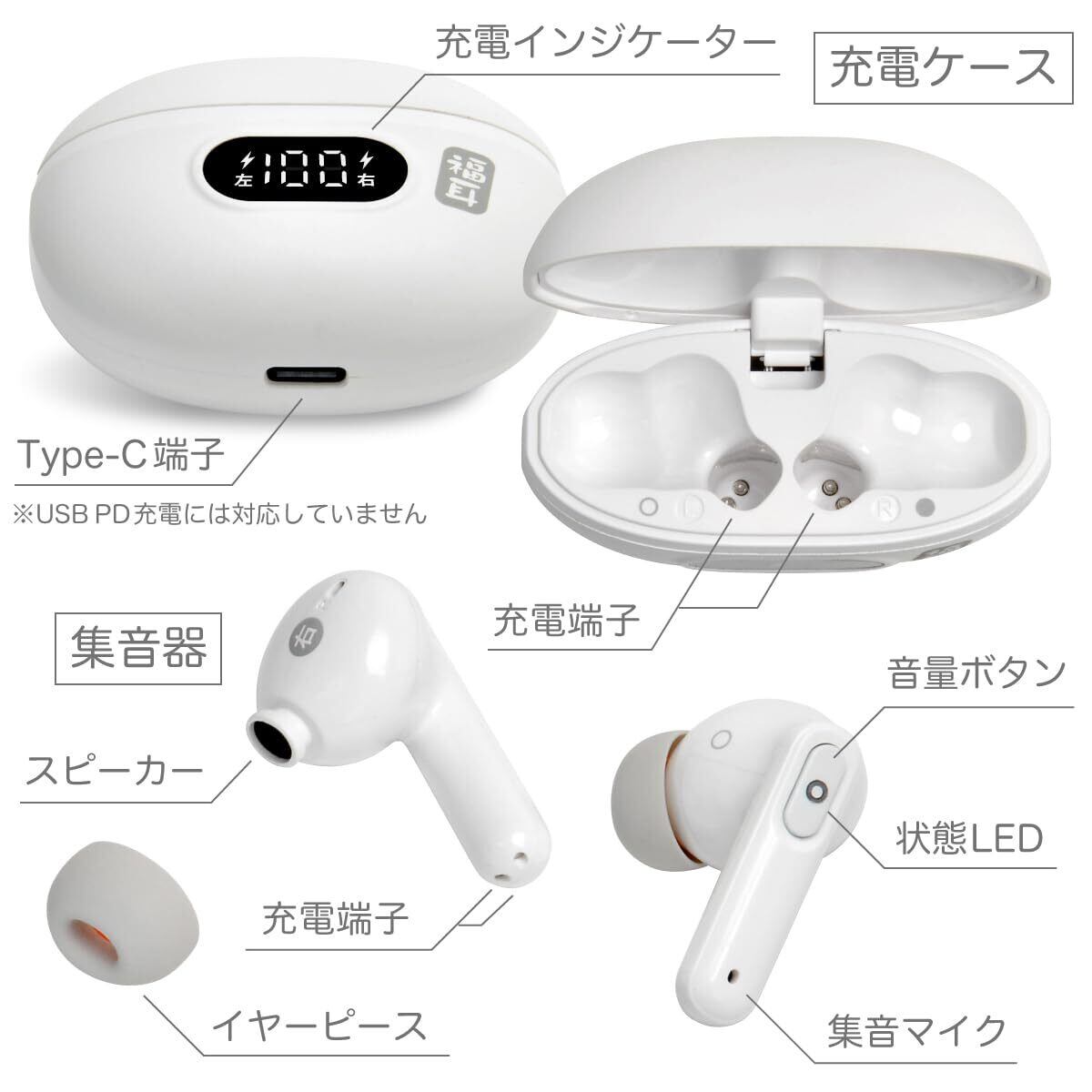 【数量限定】JTT Online 集音器 福耳 smart(ふくみみスマート)耳穴式 USB充電 35倍増幅 クリアなデジタル方式 Bluetooth5.3 ワイヤレスイヤホンとしても使える ノイズ低減モード3段階 落下防止イヤーウィング イヤーフック付属 FUKUMISMAR
