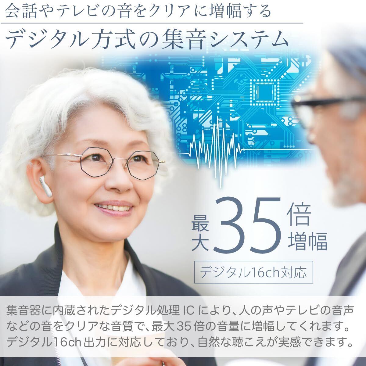 【会話やテレビの音をクリアに増幅するデジタル方式】集音器に内蔵されたデジタル処理ICにより、人の声やテレビの音声などの音をクリアな音質で、最大35倍の音量に増幅してくれます。デジタル16ch出力に対応しており、自然な聴こえが実感できます。