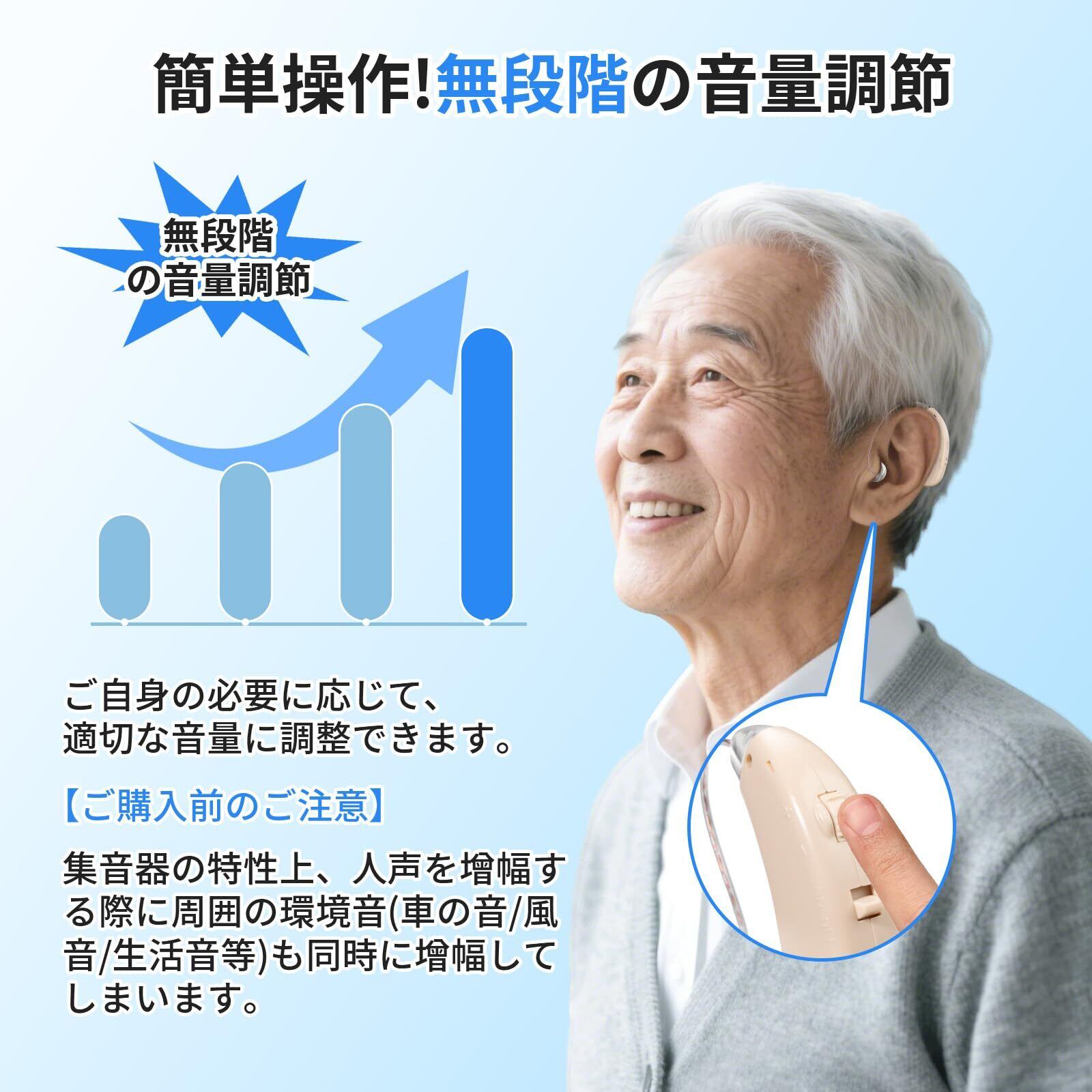【ギフト最適&12か月】高齢者向けに特別に設計された集音器には、操作はしやすいです。快適な聞こえをお楽しみいただけます!敬老の日、親友のお誕生日、母と、父の日に心のこもった贈り物として最適です。商品に不具合がある場合は、返品、返金、交換が対応可能、ご使用中に何か問題や不満な点がございましたら、お気軽にご連絡ください,お客様の問題には全力で対応させていただきます。【注意】使用初めの際に少し違和感を感じる場合がございますが、これは正常な反応です。長期間音が聞こえない環境にいて、急に音が聞こえるようになると、脳が慣れていないので少しうるさく感じることがあります。耳には慣らし期間を考慮し、最初は1日1時間・翌日は2時間程度の短時間使用から始め、装着時間を徐々に延ばす、慣れてくれば不快感は軽減されるかもしれません。