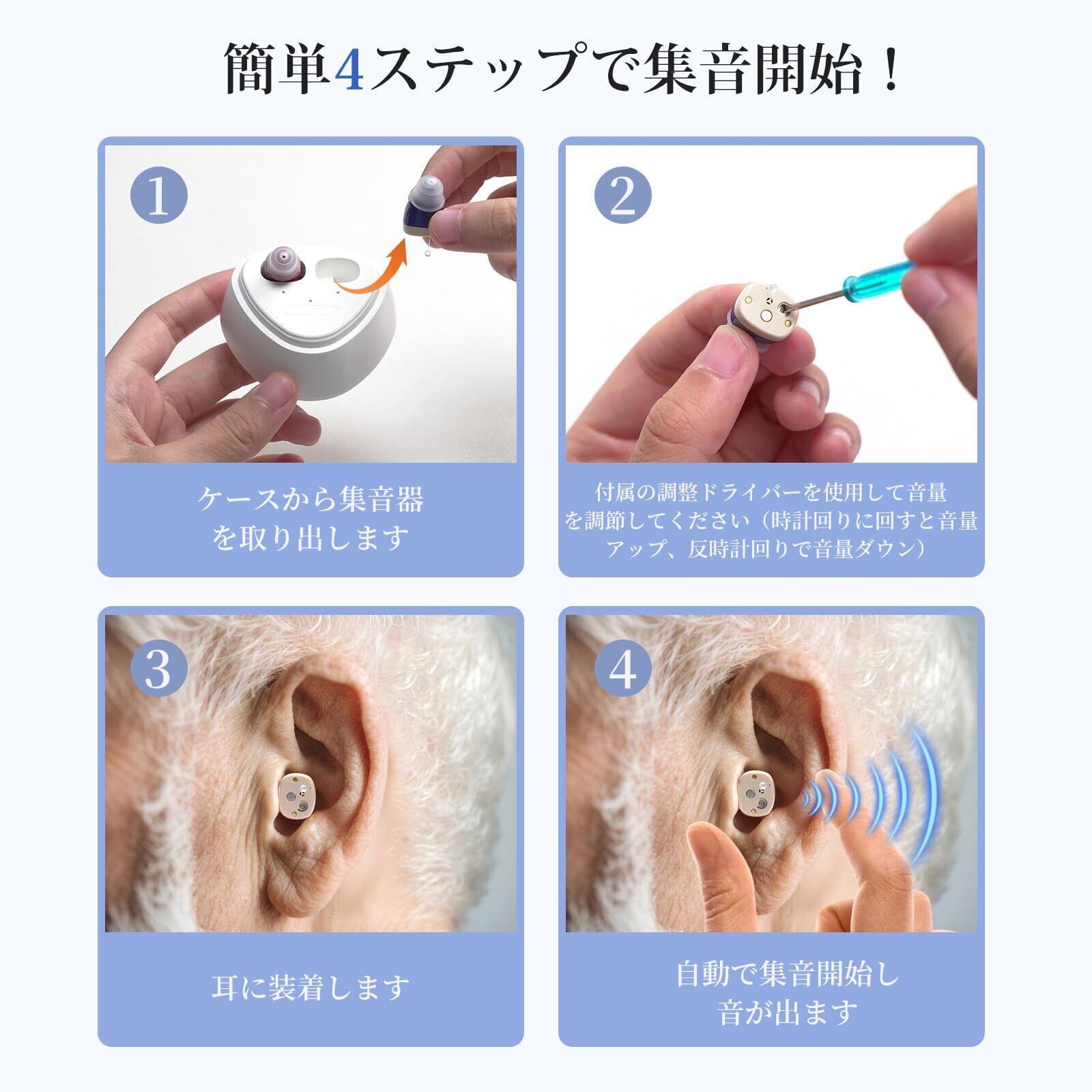 【限定セール】集音器 高齢者 しゅうおんき 【2025年革新型・わずか2.2g・無段階音量調整・自動電源・簡単操作】 楽ちんヒアリング Type-C充電 最大20時間連続使用 耳穴型 片耳/両耳対応 高齢者向け 50倍音増幅 ノイズ抑え 人間工学 快適 ギフト プレゼント 贈り物 敬老の日 祖父 祖母 父の日 母の日 日本語取扱説明書