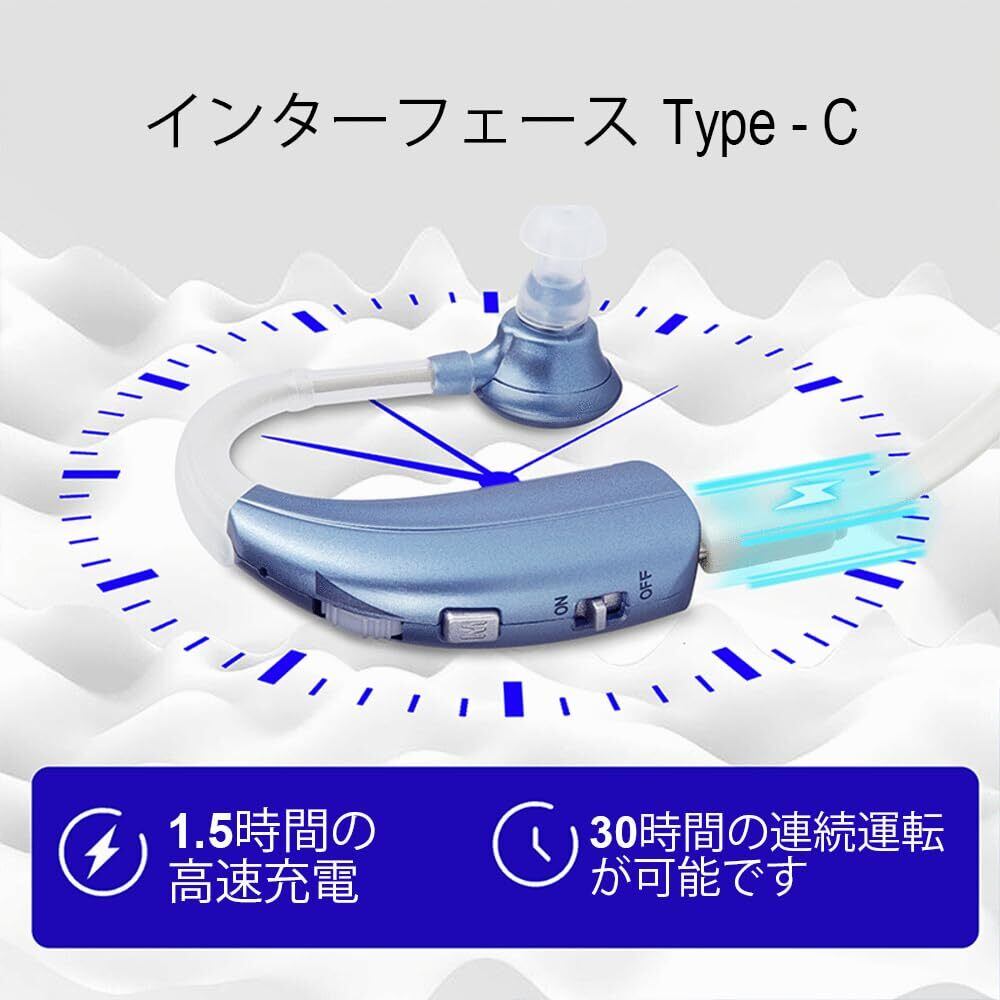 【コンパクトで軽量、快適な着け心地】重さは6gと軽量で、耳への負担も少なく、長時間装着しても快適な使い心地を楽しめます。 ボタンが大きいので、高齢者の方でも自立して使いやすいと思います。 【充電式・長時間稼働】充電式なので、電池交換の手間を省くことができ、充電口に差し込むだけで充電が可能です。一度フル充電すれば、最大40時間の連続使用が可能なので、外出や旅行、アウトドアでも安心してお使いいただけます。 USB充電方式で、より簡単に充電できます。 【クリア音質集音・高齢者向け】音を大きくすることができ、話し声やテレビの音を大きくしてくれ、かすかな声でも聞こえます。カラーは3色から選択可能です。高齢者に向け、敬老の日、父の日と母の日の喜ばれるギフトとしてもお勧めです。 【耳掛けタイプ・左右両用】イヤーピース4個付き、耳穴のサイズに合わせて適切なピースを装着してから簡単に使用できます。耳の後ろに挟み、引っ掛けて固定できるので、脱落の心配がなく、楽に使用すること。【ショッピングを楽しむ】お買い上げ日から365日の期間付き、商品につきまして何か不具合あるいはご質問があれば、遠慮なくご連絡ください。ホームページに「アカウントサービス」→「注文履歴」→「当商品を開き、店舗の名前」→「質問する」の手順により、とご連絡ください。が24時間以内に対応できます。