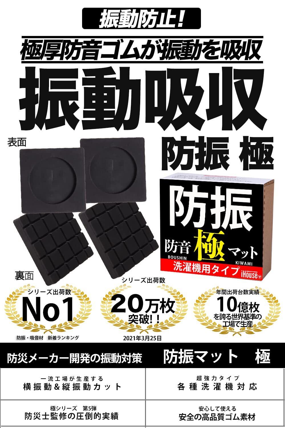 【数量限定】iHouse all 洗濯機 防振ゴム 洗濯機 マット 洗濯機 台 防振マット 滑り止め ゴム 洗濯機 かさ上げ台 高さ調整 振動吸収 洗濯機用防振ゴム かさあげ 防音 耐震マット 洗濯機置き台 防振防音 揺れ防止