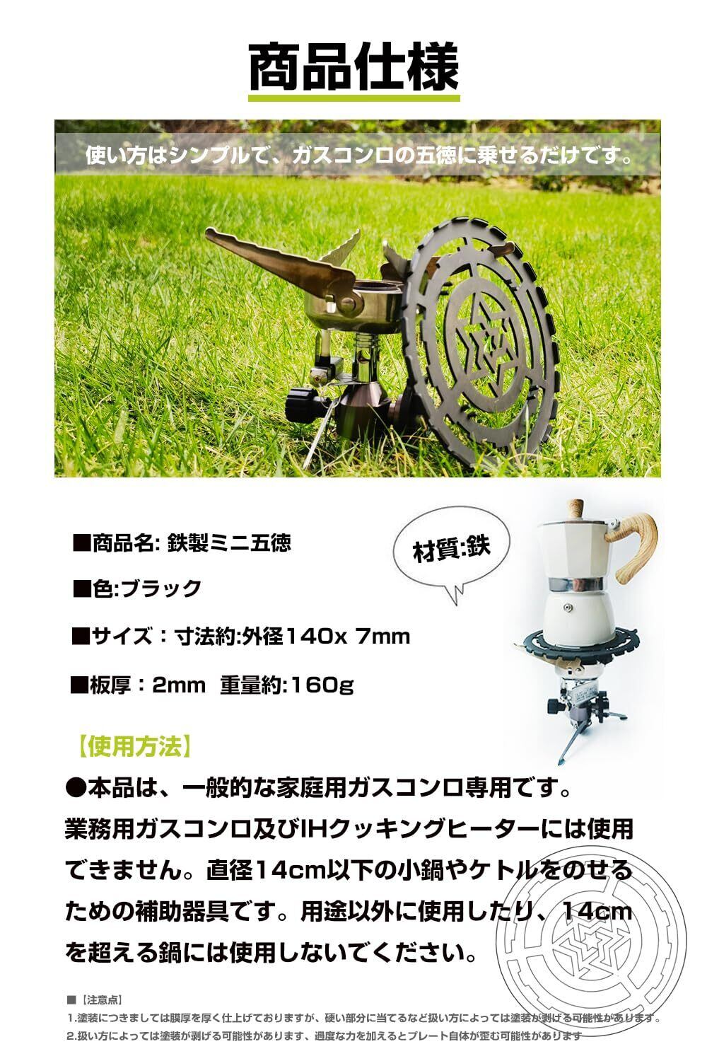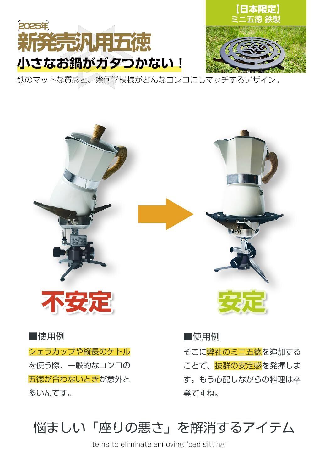 ■【コンパクトに設計されたミニ五徳で、アウトドア料理をもっと楽しもう!】ミニ五徳は軽量ながら頑丈な鉄製で、キャンプやバーベキューなどのアウトドアシーンでの利便性を追求しました。イワタニCB-JCB、ST-310、ST-340、ST-330など対応のバーナーとの組み合わせで、手軽にお鍋やフライパンを安定して使うことができます。