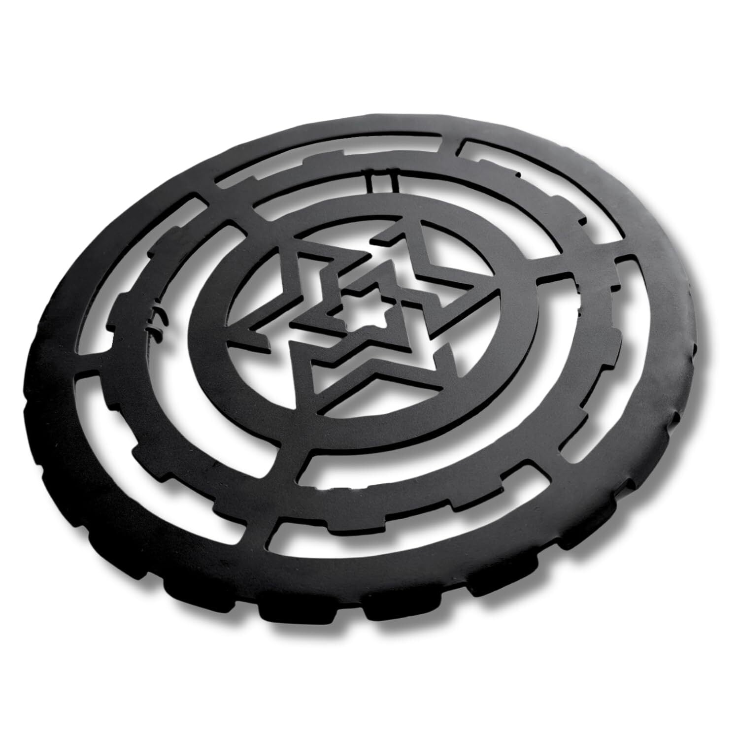 【星型ロゴを作成!】中 。「大自然の始まり」を意味するロゴを採用された。自然の中には、日常生活では味わえない刺激や感動が無数にあります。自然にシンプルさと美しさを感じてほしい。鉄のマットな質感と、幾何学模様がどんなコンロにもマッチするデザイン。薄いので収納がしやすいのはもちろん、そのままキッチンのガスコンロに乗せっぱなしにしても問題ありません。冷えていれば鍋敷きとして使ってもいいですし、スッと生活に入り込んでくれます。