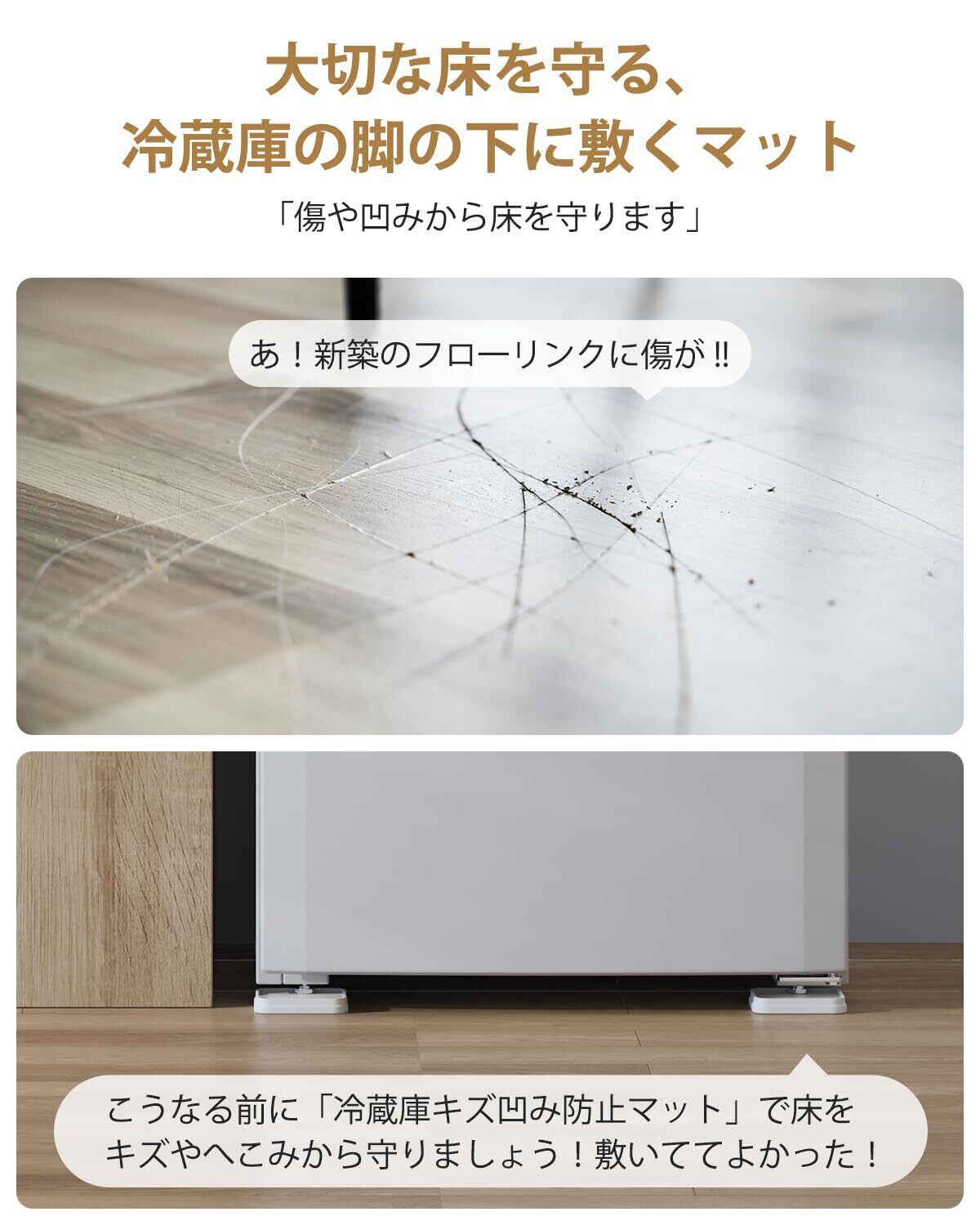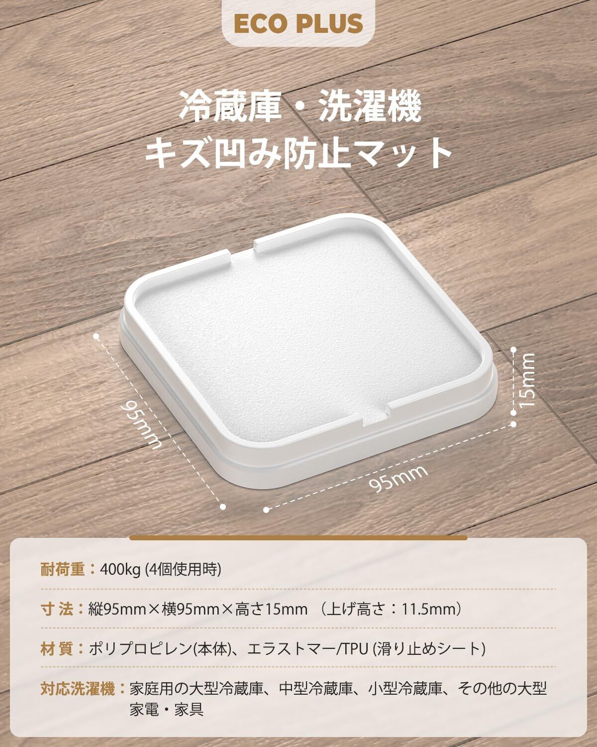 【2025最新】[ECO PLUS] 冷蔵庫 マット キズ防止 凹み防止 床保護シート 冷蔵庫・洗濯機・乾燥機 底上げ台 防音・防振・滑り止め ・床に傷防止 床暖房対応 耐荷重約400kg 1セット4個入り