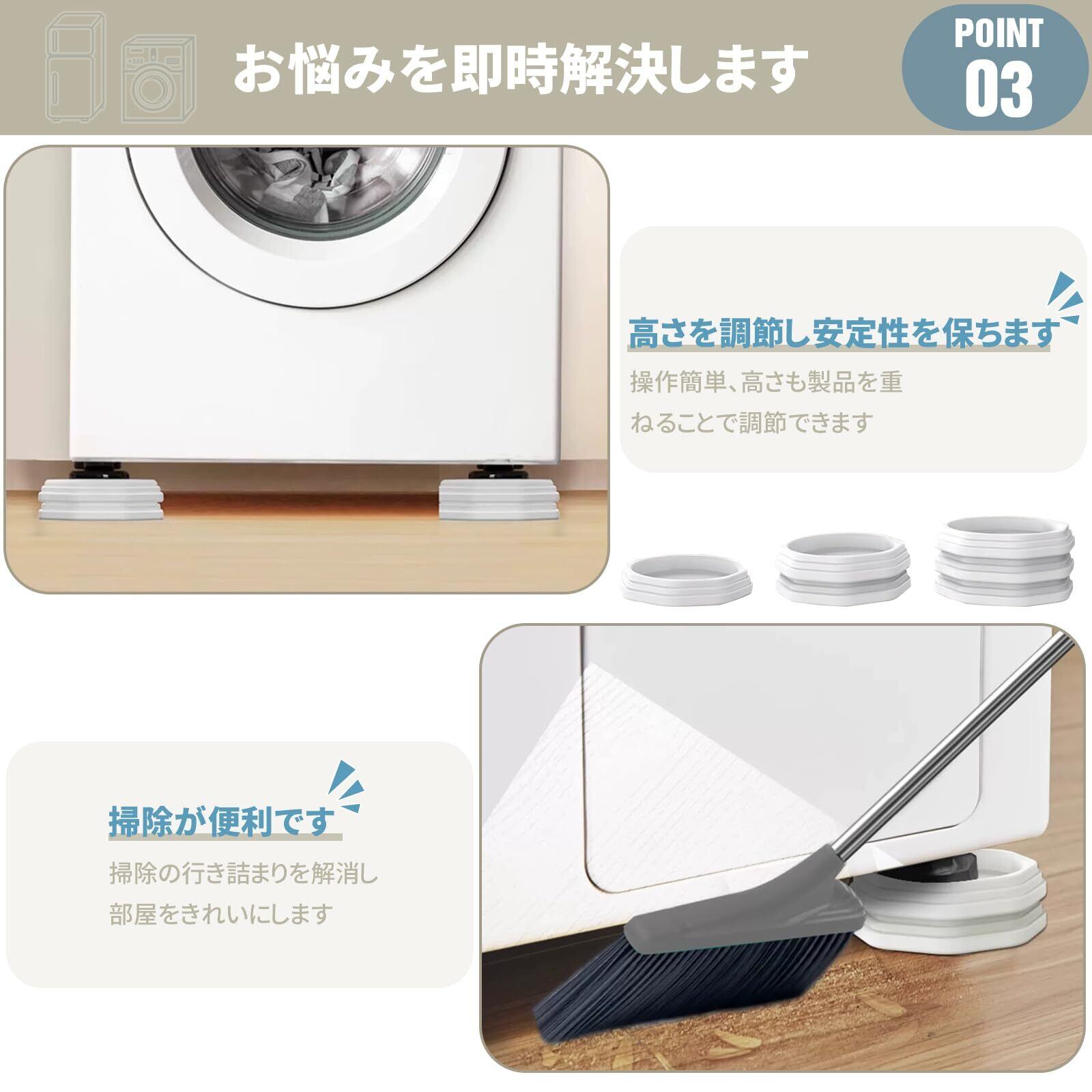 【多用途】さまざまなタイプの冷蔵庫、テレビ、洗濯机、テーブルなどの家具や大型家電の耐衝撃静音に適応します。家具家電製品の各脚の下に置くだけで、より安定になり、振動や騒音を低減することもできます。使用シーンに応じて、マットの数を自由に増やすこともできます。