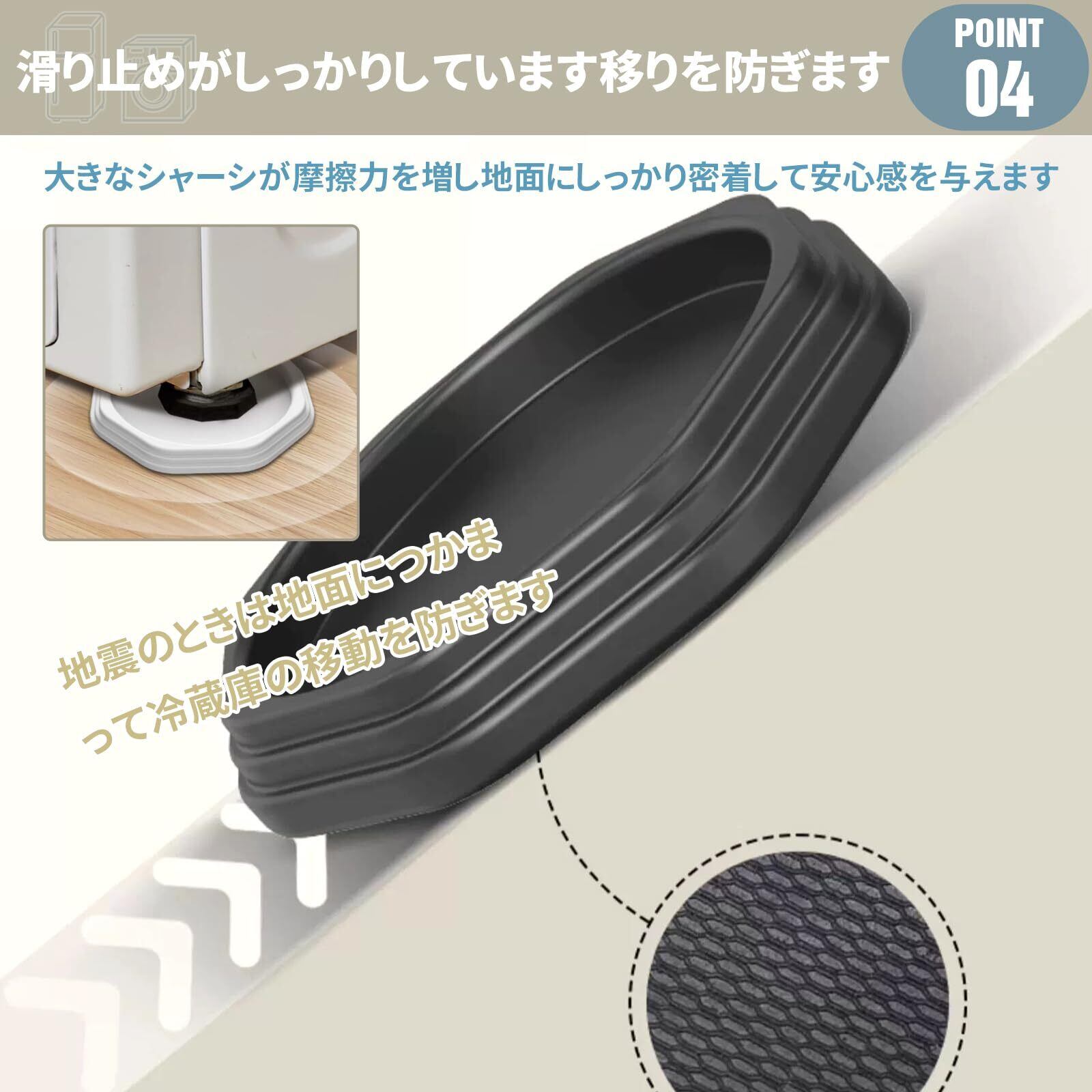 ■【防振・防音効果が抜群!】本製品は、特に冷蔵庫の振動や音を吸収することに優れています。防振ゴム製で、静かな環境を保つことができるので、深夜の食事や家事の際にも周囲を気にせず心地よくお使いいただけます。