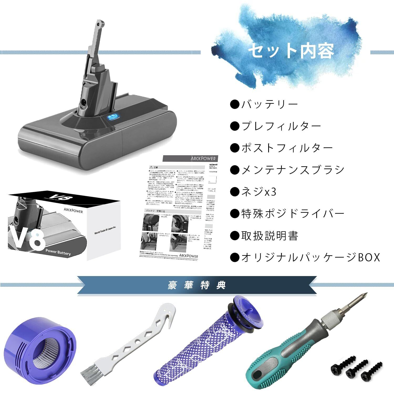 【PL保険対応】 ダイソン V8 (SV10) 互換 バッテリー 掃除機 豪華特典版 フルセット 日本メーカー 365日 PSE適合 Fluffy Absolute Animal Slim アークパワー