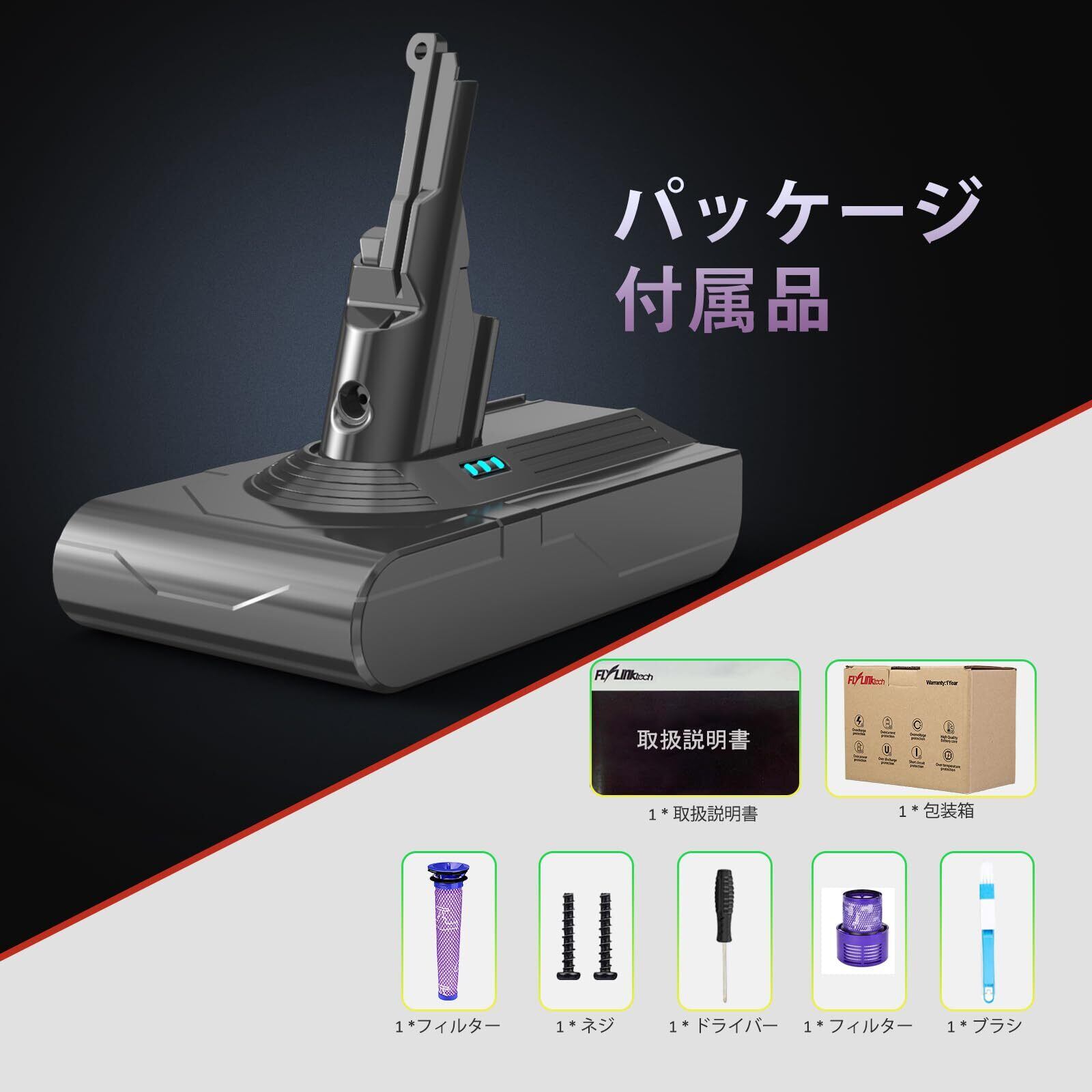 【取り付け簡単・付属品充実】 交換バッテリー×1、プレモーターフィルター×1、ポストモーターフィルター×1、掃除ブラシ×1、交換用ネジ×3、日本語取扱説明書×1。 届いてすぐに交換可能なフルセット。