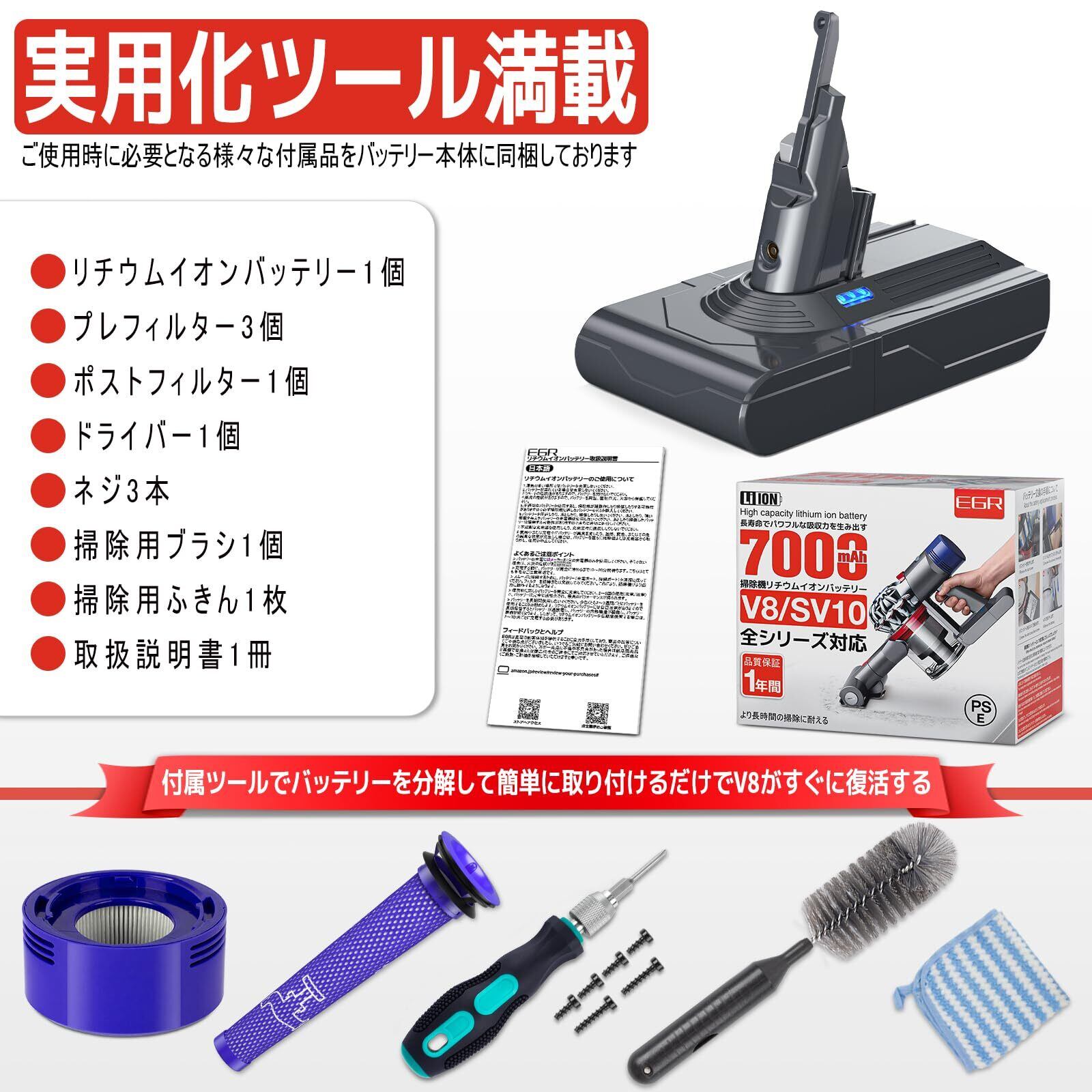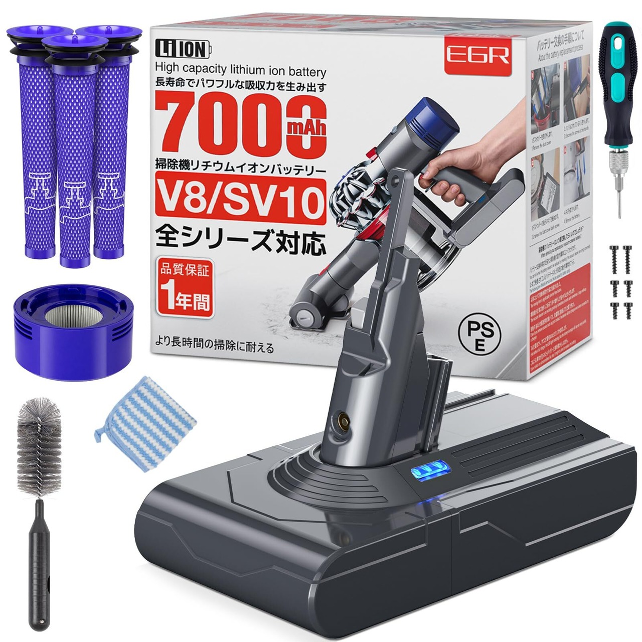 EGR V8 バッテリー ダイソン V8 掃除機対応 7000mAh V8 Animal V8 Absolute V8 Motorhead V8 Fluffy SV10全機種対応 バッテリー交換用 大容量電池 PSE認証済 長寿命電池搭載 一年間メーカー