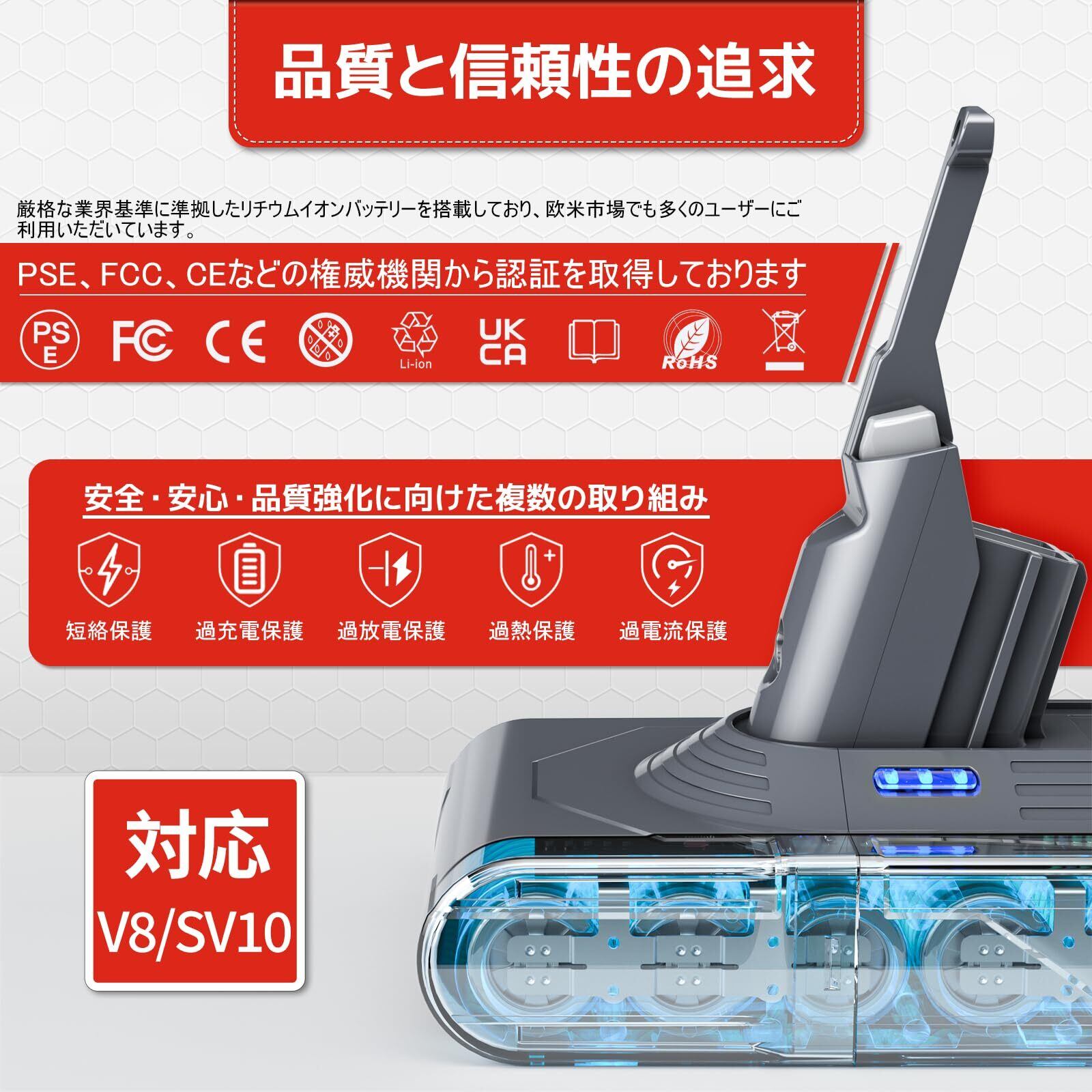 【V8機種対応、純正品と完全に互換】V8 掃除機 交換用 バッテリー V8 / SV10シリーズ/V8 Fluffy / V8 Absolute / V8 Animal / V8 Motorhead / V8 Extra / V8 Mattress / V8 Trigger / V8 Car+boatなどに対応しています。壁掛け充電もサポートします。