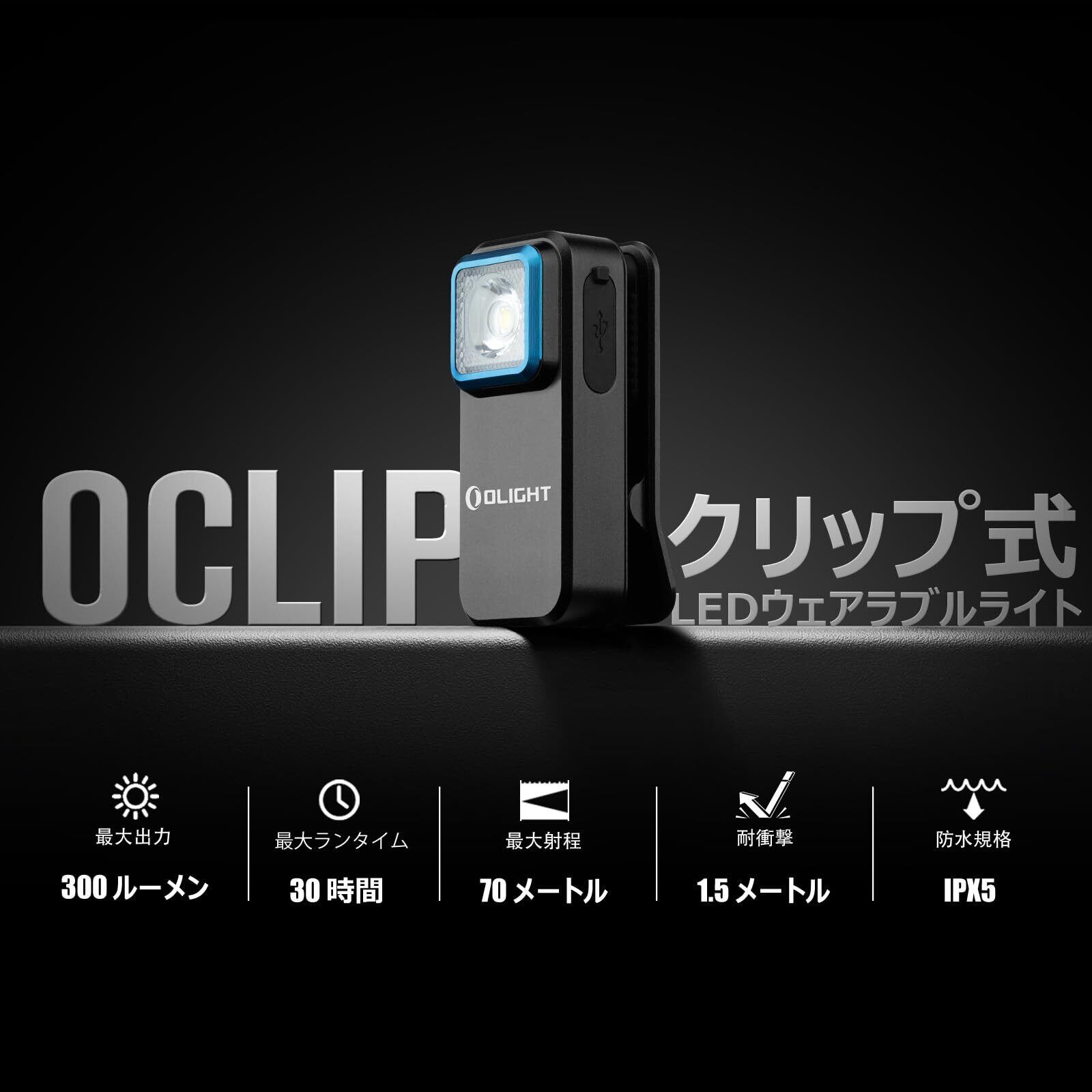 ■【驚きの高輝度!】OLIGHTのOclipライトは、最大300ルーメンの驚くべき明るさを実現!夜のランニングやキャンプ、外出時、様々なシーンでの高視認性を確保し、安心・安全な行動をサポートします。
