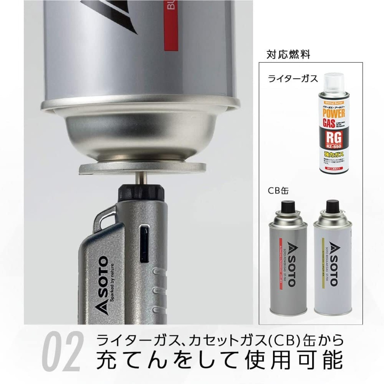 使用燃料:SOTO製品専用容器(ボンベ) [CB缶] (ST-760、ST-700)、ライター用ガス