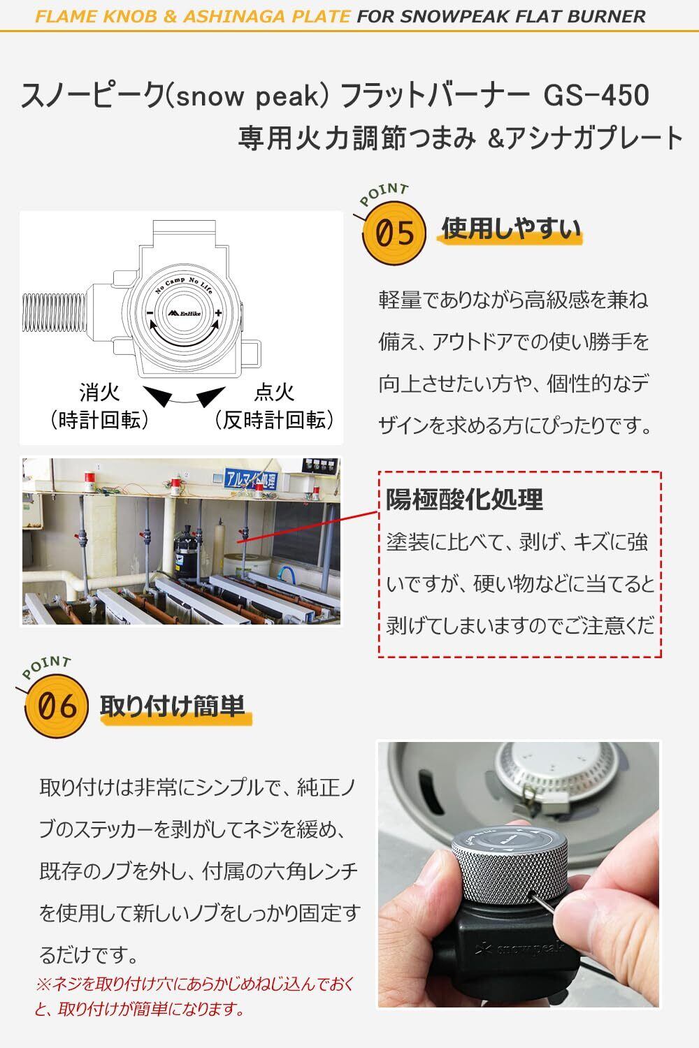 アシナガプレート 火力調節ノブ スノーピーク snow peak フラットバーナー GS-450用 器具栓延長プレート&交換つまみ アシストセット キャンプ アウトドア アクセサリー