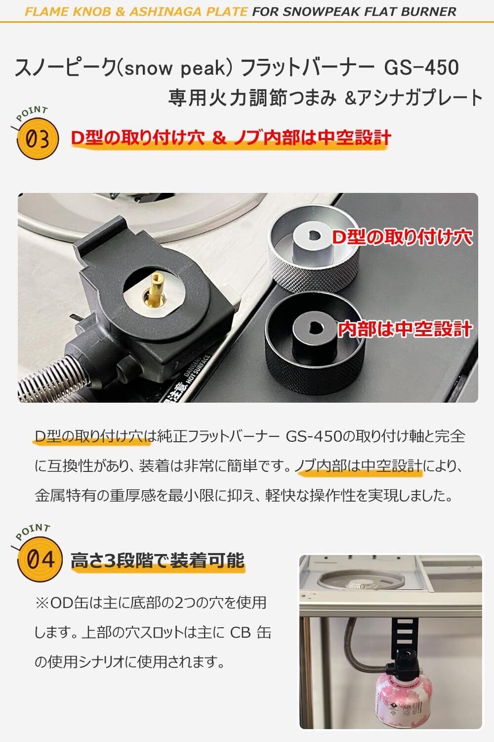 【在庫限り】アシナガプレート 火力調節ノブ スノーピーク snow peak フラットバーナー GS-450用 器具栓延長プレート&交換つまみ アシストセット キャンプ アウトドア アクセサリー