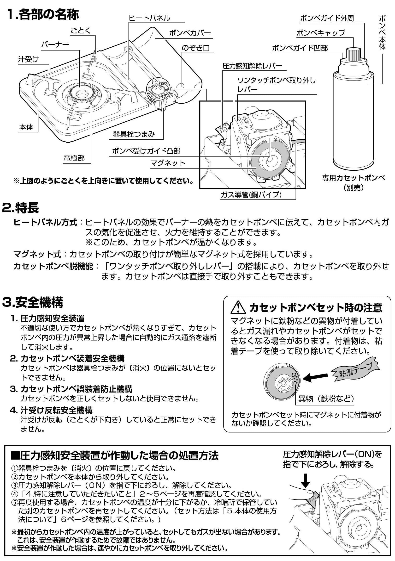 点火方式:圧電点火方式、安全装置:圧力感知安全装置
