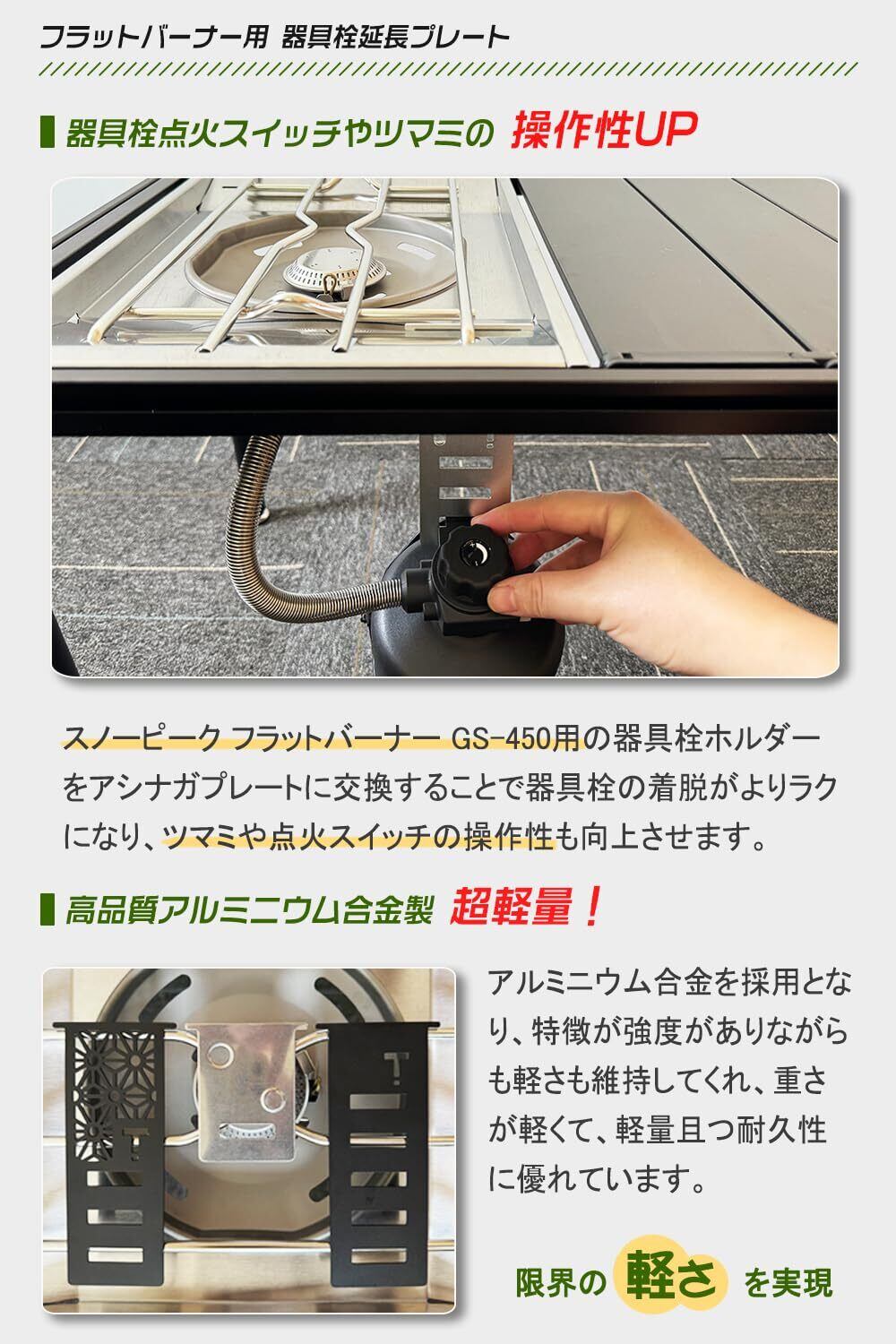 【新着商品】フラットバーナー 延長プレート 器具栓足長プレート アシナガプレート スノーピークGS-450用 軽量 アルミ合金製