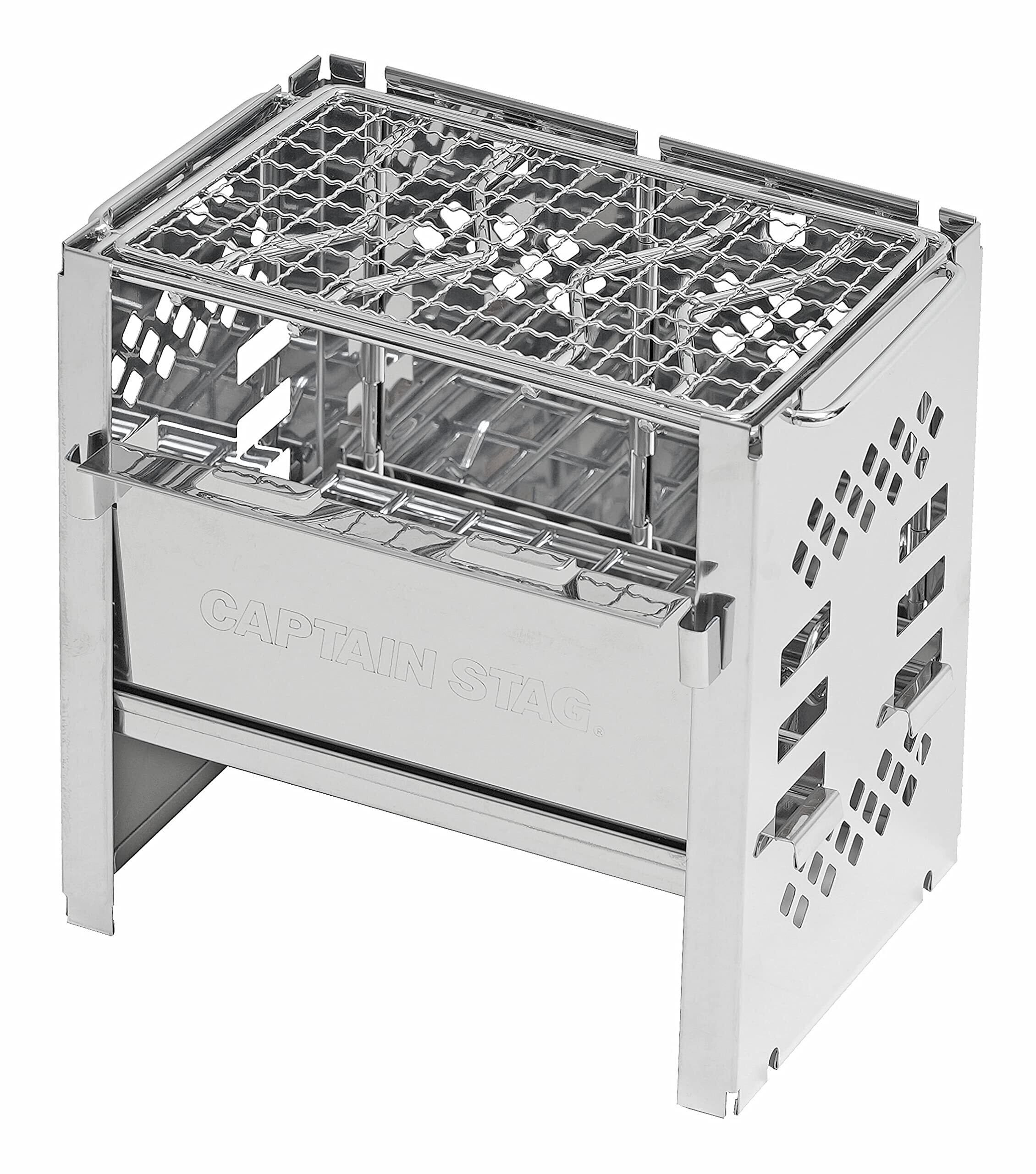 【 限定】 キャプテンスタッグ(CAPTAIN STAG) バーベキューコンロ 焚火台 1台3役 折りたたみ カマド スマートグリル 【B6型/B5型】 3段階調節可能 ステンレス製 バッグ付き UG-45/UY-7021