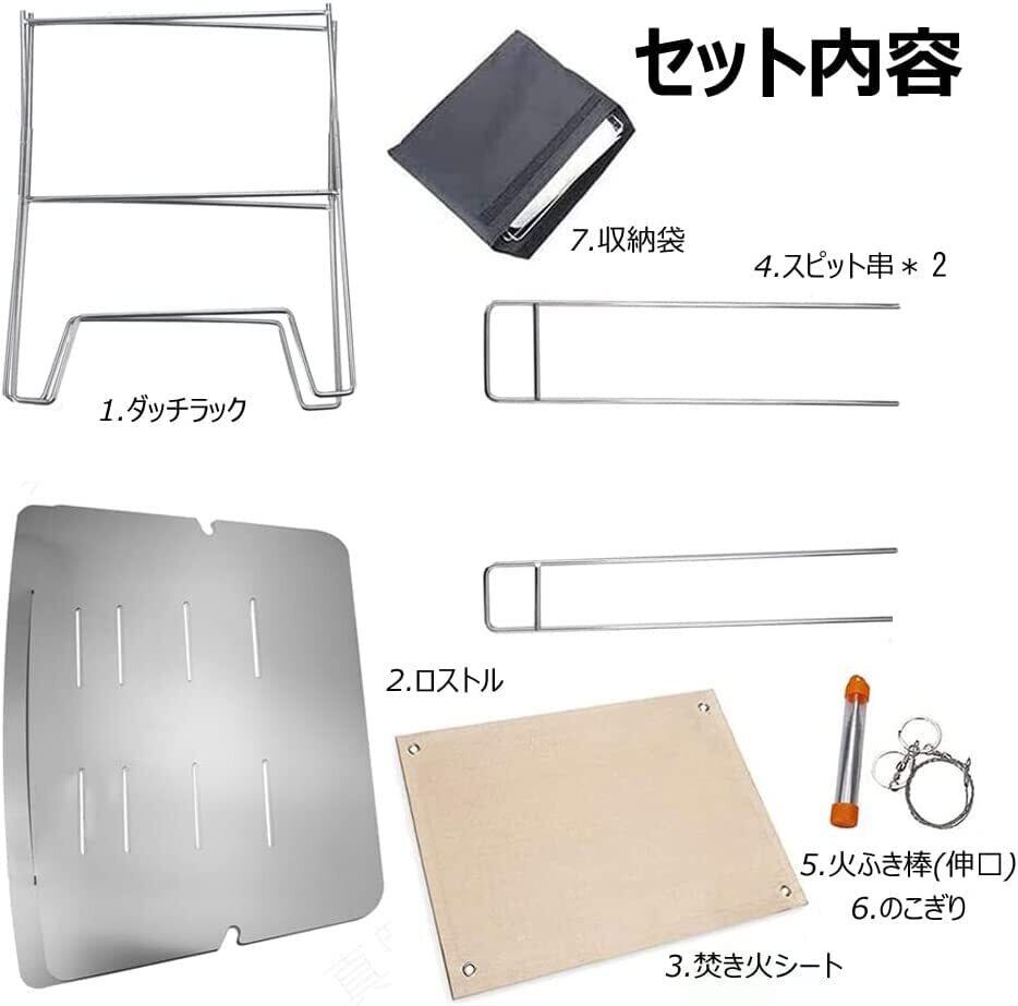 【最新デザインにより、セットは簡単 】グリルとスタンドをひろげて、ボトムプレート(灰受)をセットし ロストルを写真のようにセットします・最後にダッチラックを焚き火台に載せて完了。最新デザインにより、グリルとスタンドを両面の方向にひろげるだけで土台がセットできます。(写真のように)