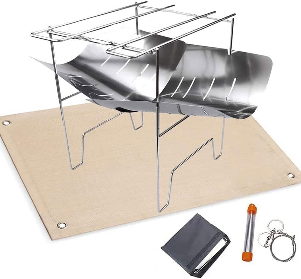 焚き火台 焚火台 コンパクト 1台3役 バーベキューコンロ 折りたたみ ダッチオーブン キャンプ 軽量 ステンレス製 bbq キャンプ用品 ロストル 炊き火台 キャンプ コンロ キャンプ たき火台 ストーブ キャンプ 焚き火台セット 収納ケース付き (焚き火シート付き)
