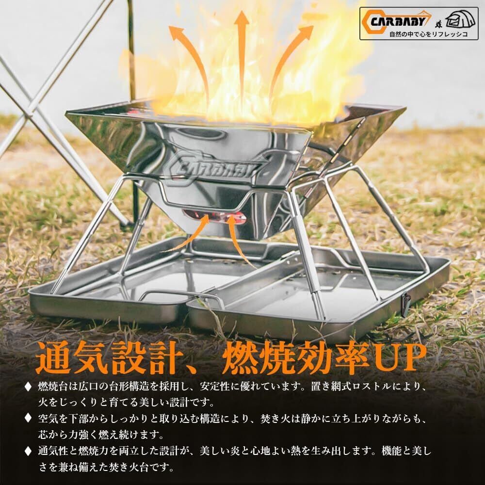 CARBABY バーベキューコンロ 焚き火台 収納ケース付き ステンレス製 2-4人用 アウトドア キャンプ