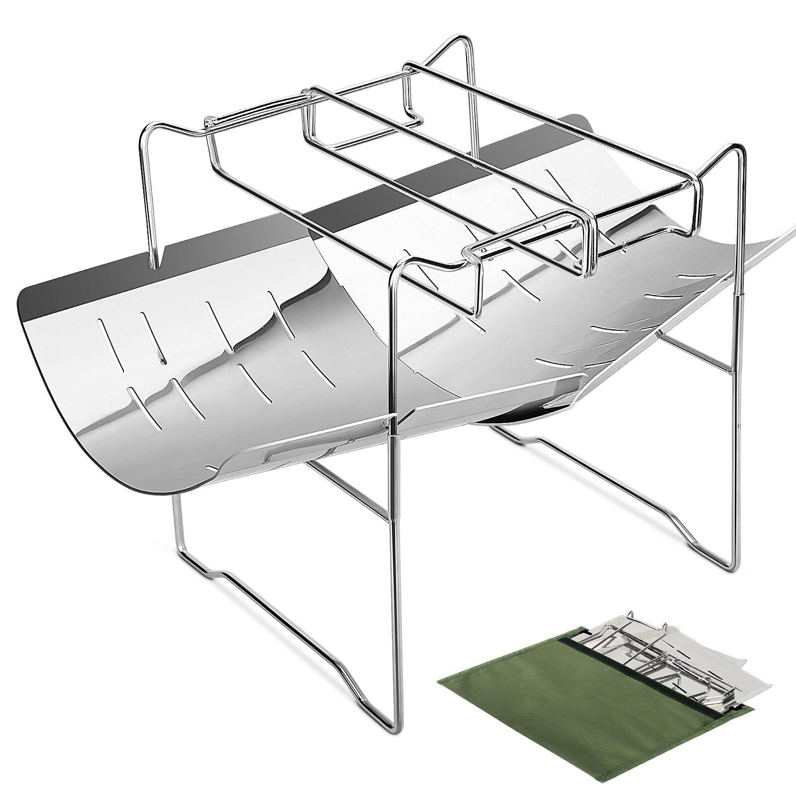 焚火台 コンパクト 焚き火台 【高さ調整可・2倍厚く火床】 フック式五徳 ステンレス製 軽量 1-3人用 折りたたみ式 1台3役 A4サイズ バーベキューコンロ BBQコンロ たきび台 キャンプ 焚火 焚き火台 収納ケース付き