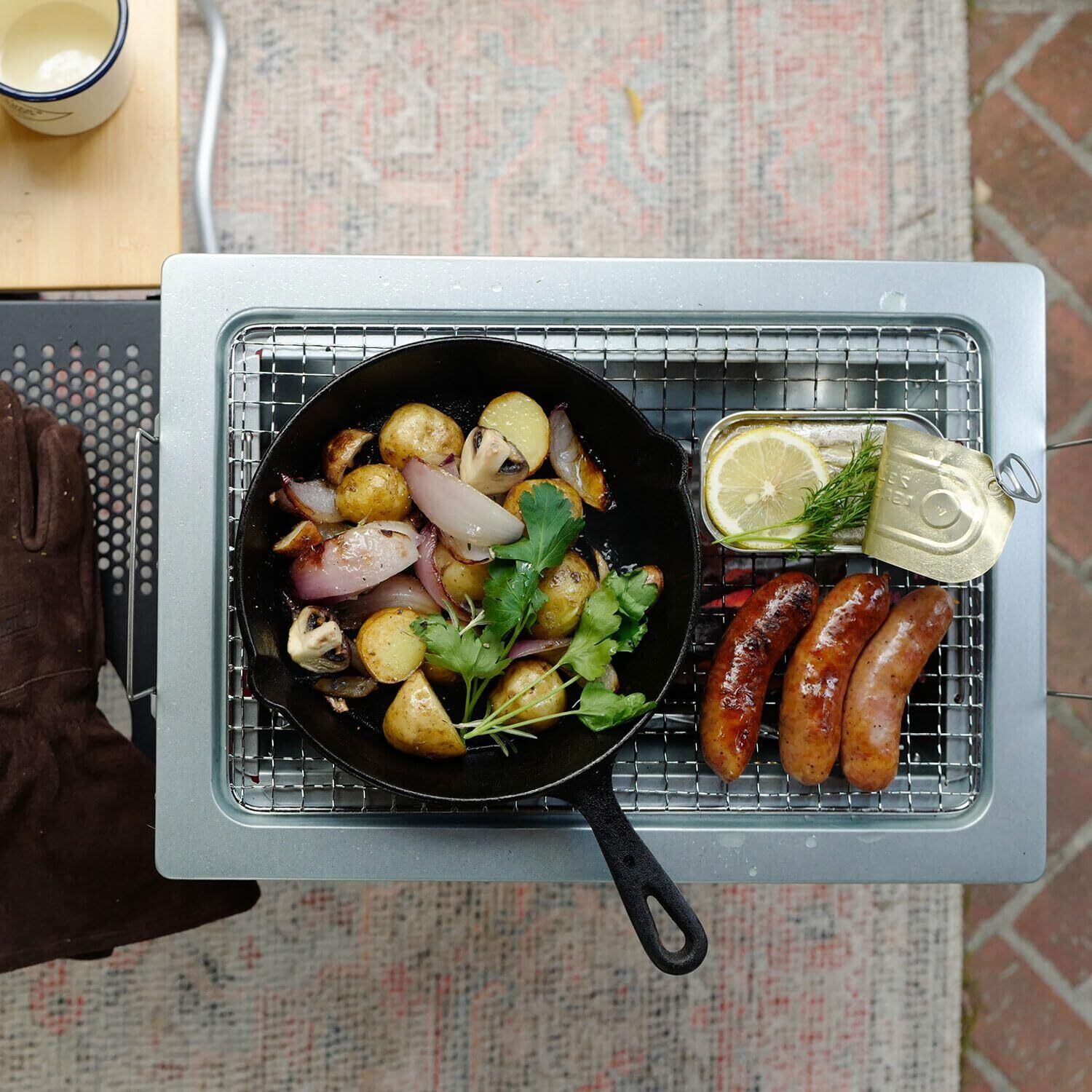 【使用シーン】アウトドア・キャンプ・BBQで活躍する、コンパクトサイズの卓上グリルです。