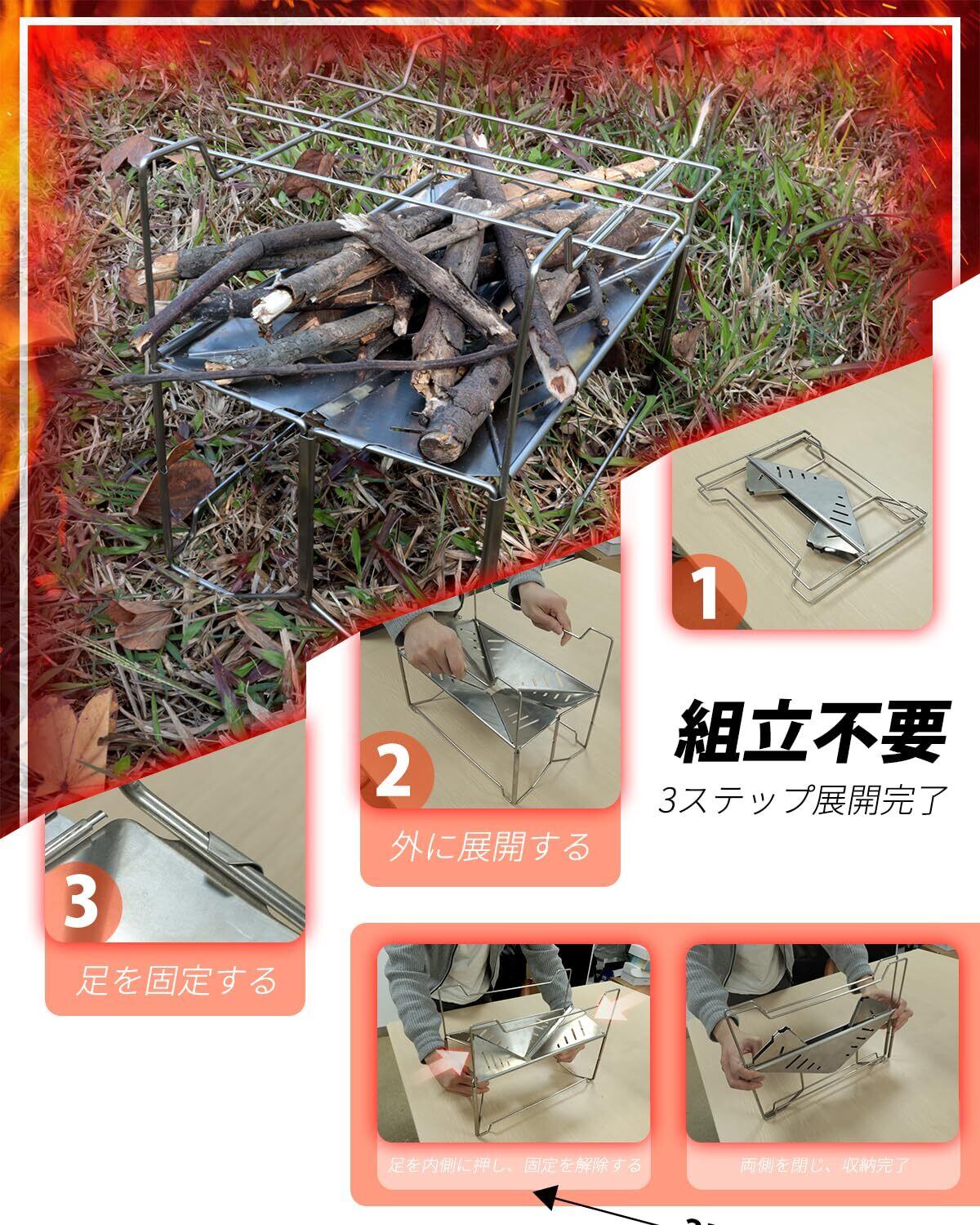 ■【高品質なステンレス製!】本商品は、耐久性の高いステンレス製で作られており、焚き火の熱にもしっかり耐えられます。軽量で持ち運びやすいデザインながらも、安心してご使用いただける高品質な素材を使用しています。