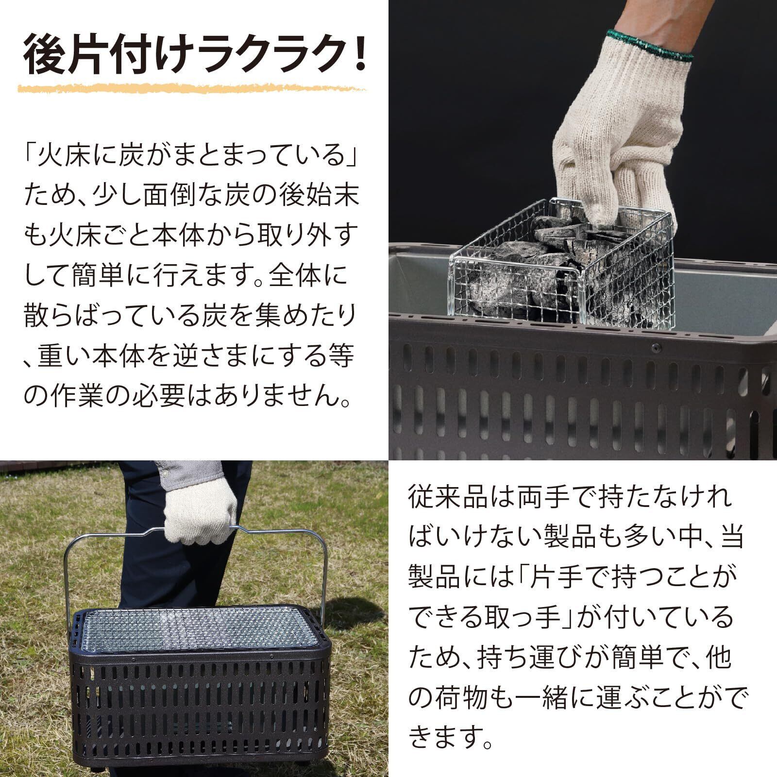 後片付けがラクラク、火床に炭がまとまっているので灰捨ての後処理がカンタンにできる。