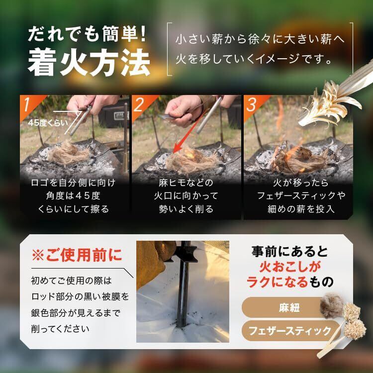 ■【簡単着火でアウトドアを楽しむ!】この山麓工房の極太ファイヤースターターは、キャンプやBBQの必需品です。フェロセリウムを使用し、瞬時に火を起こすことができるため、ストレスなく楽しい時間を提供します。