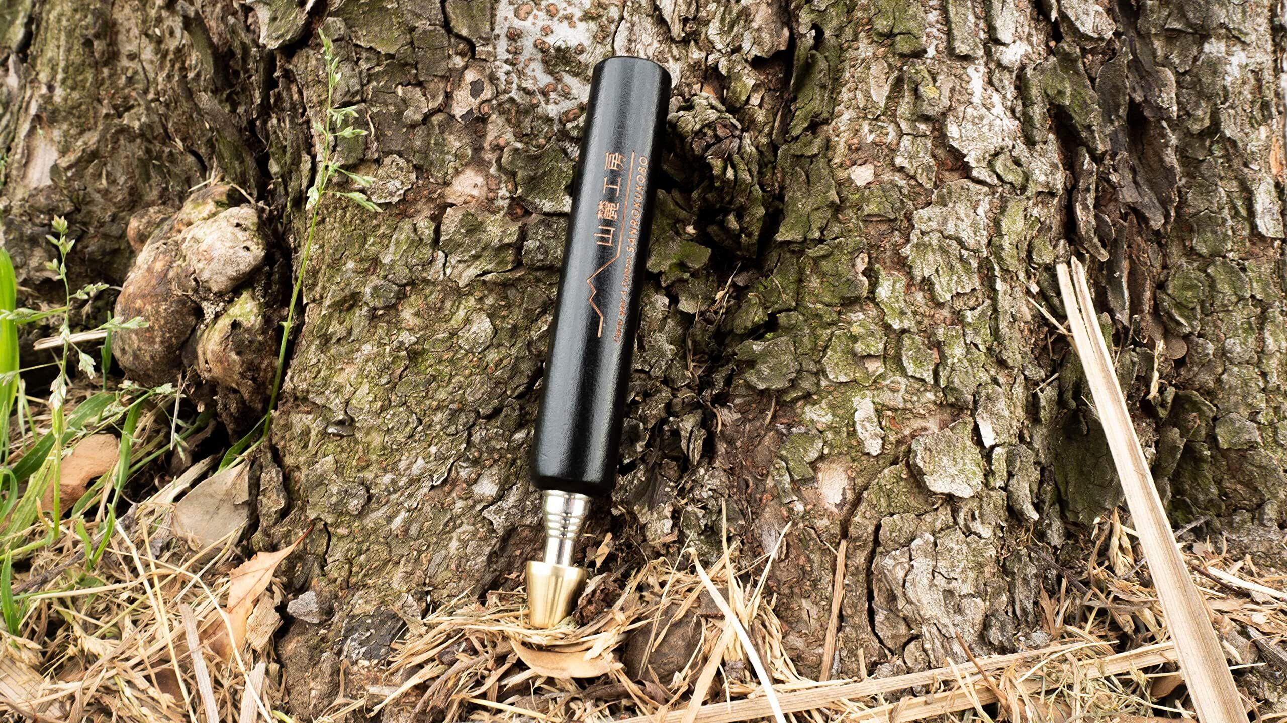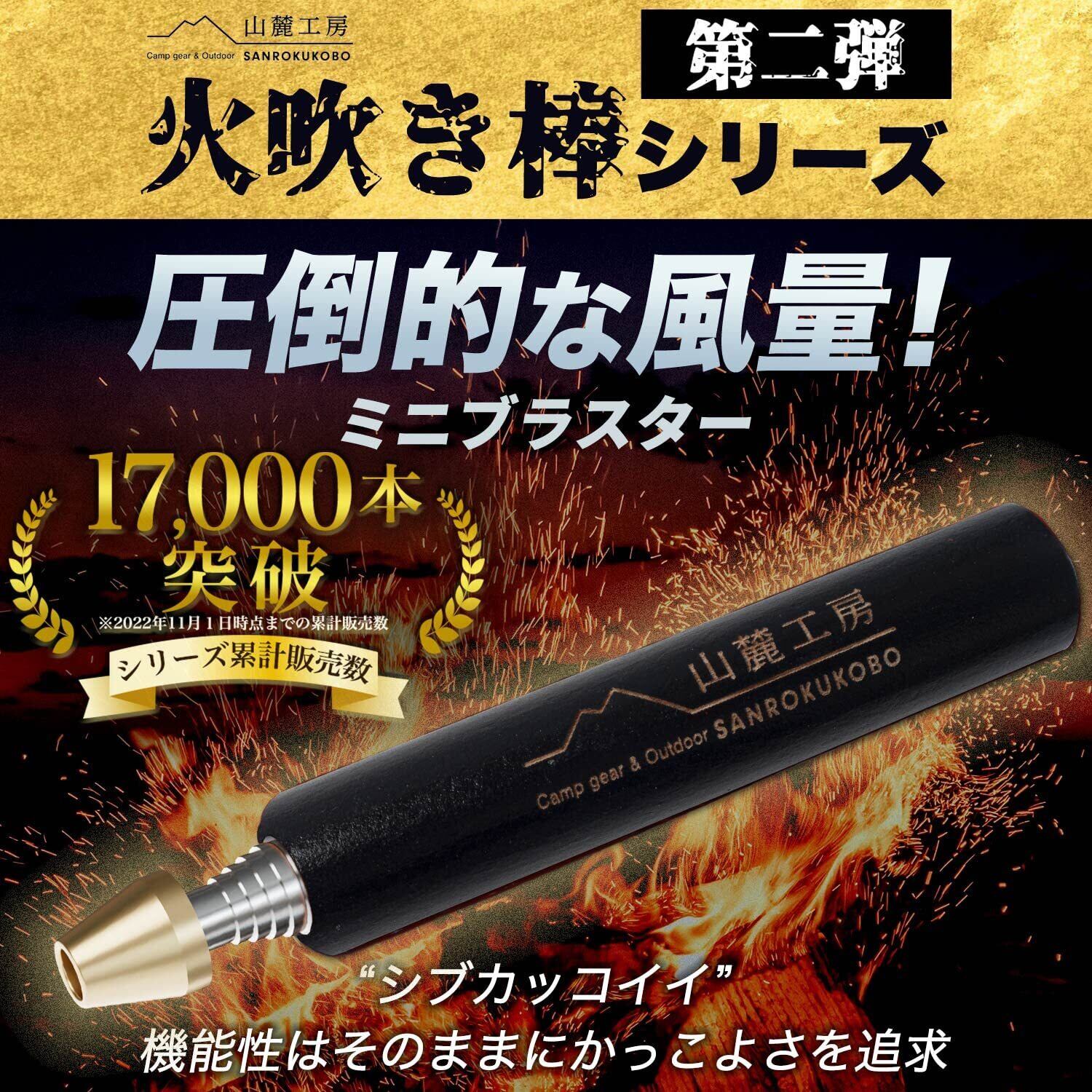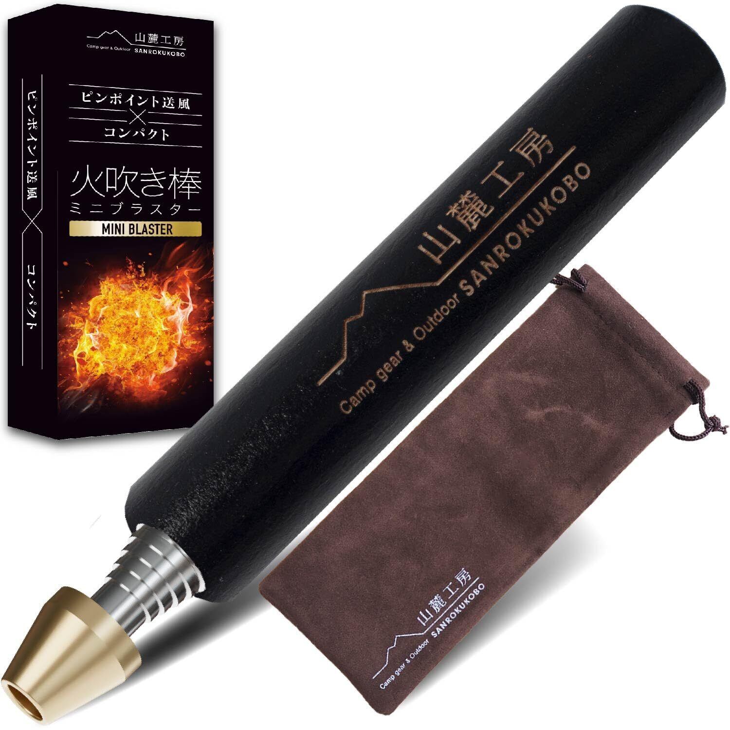 【山麓工房火吹き棒シリーズ第二弾!】山麓工房の大人気商品火吹き棒の第二弾、キャンプやバーベキューの際に役に立つ火吹き棒です。その名もミニブラスター。焚火の火が弱まってしまったとき、ピンポイントに酸素を送り込むことによってうちわなどとは違って灰が飛び散らず、火を何度も燃焼させることができます。「渋さ」「コンパクトさ」「吹きやすさ」にこだわりました。