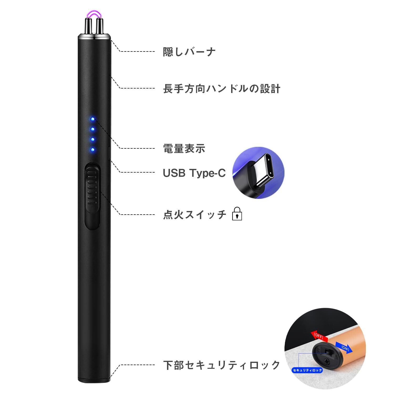 ■【充実した機能性!】USB Type C充電方式を採用しており、充電が非常に簡単で便利です。風の強い日でもしっかりと火を起こせる防風設計により、どんな条件下でも大活躍します。また、電池残量が表示されるため、安心してご利用いただけます。