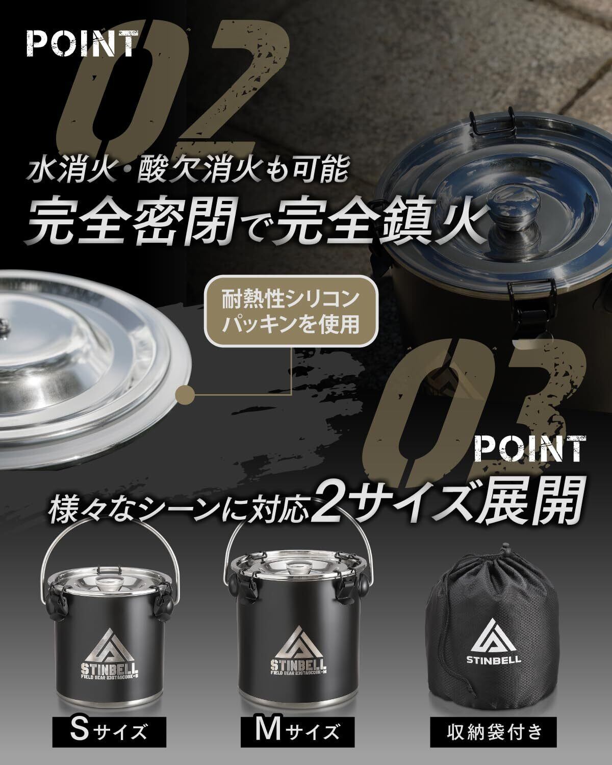 【Fielder掲載】 火消し壺 キャンプ 水・酸欠消火 ステンレス 艶消し黒色火 消しつぼ 2WAY消火 炭消し壺 炭入れ 炭壺 炭入れ容器 火消し袋 薪 消火 焚き火 収納袋 説明書付き STINBELL