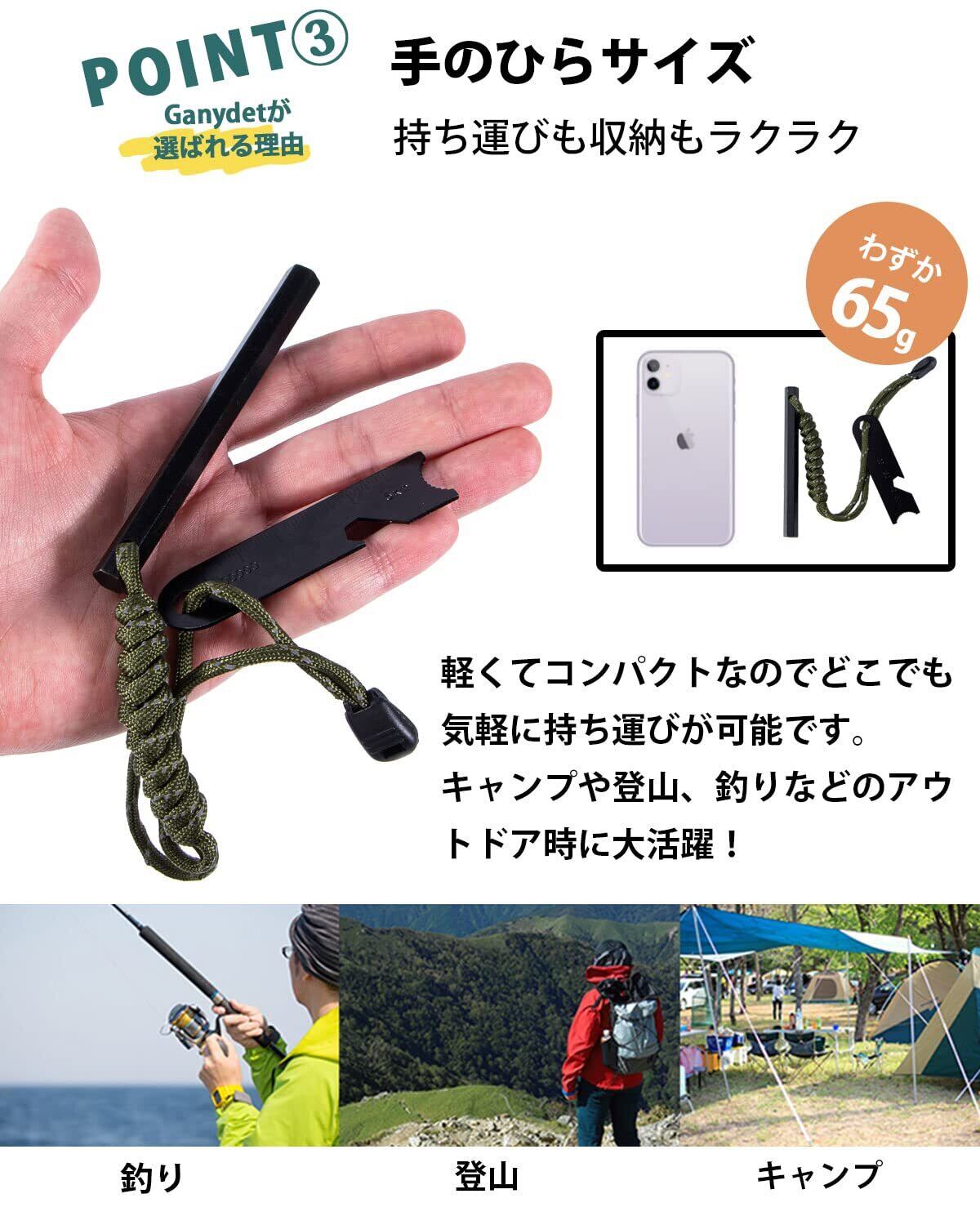 【多用途】キャンプ、ブッシュクラフト、登山、釣り、バーベキューなどのアウトドアシーンだけでなく、災害時の防災グッズとしても重宝します。コンパクトかつ軽量で持ち運びラクラク! 携帯性を重視する方にはぴったりです。