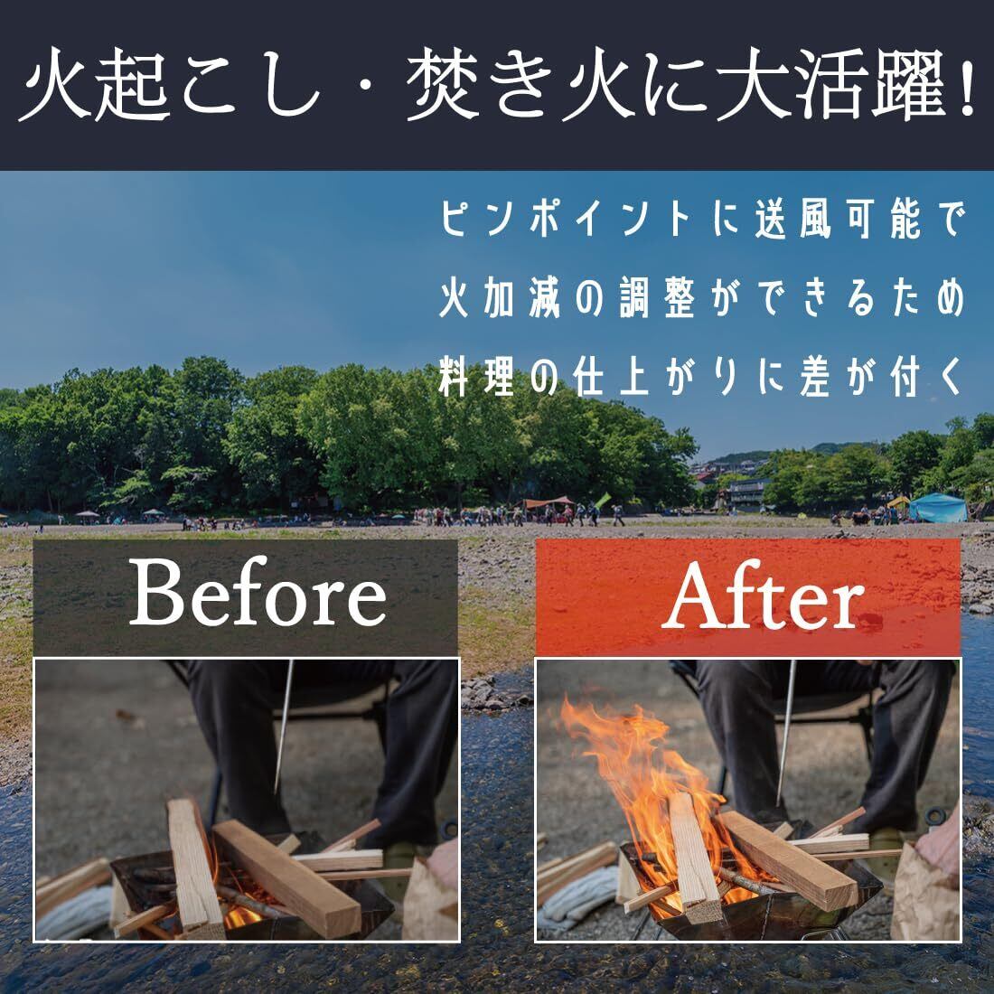 【プロのアウトドアガイド推奨】アウトドアガイド資格を保有しているプロに推薦していただきました。キャンプやバーベキューの火起こしの際にうちわのように疲れることなく、ピンポイントに効率的に酸素を供給できる必須のキャンプ用品です。調理の火力の調整にも役立ちます。
