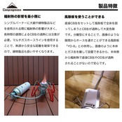 特徴:①シングルバーナー用、②バルプ式のマルチホースでガス流量の調整が可能、③CB缶→CB缶ガス器具の口金変換・延長