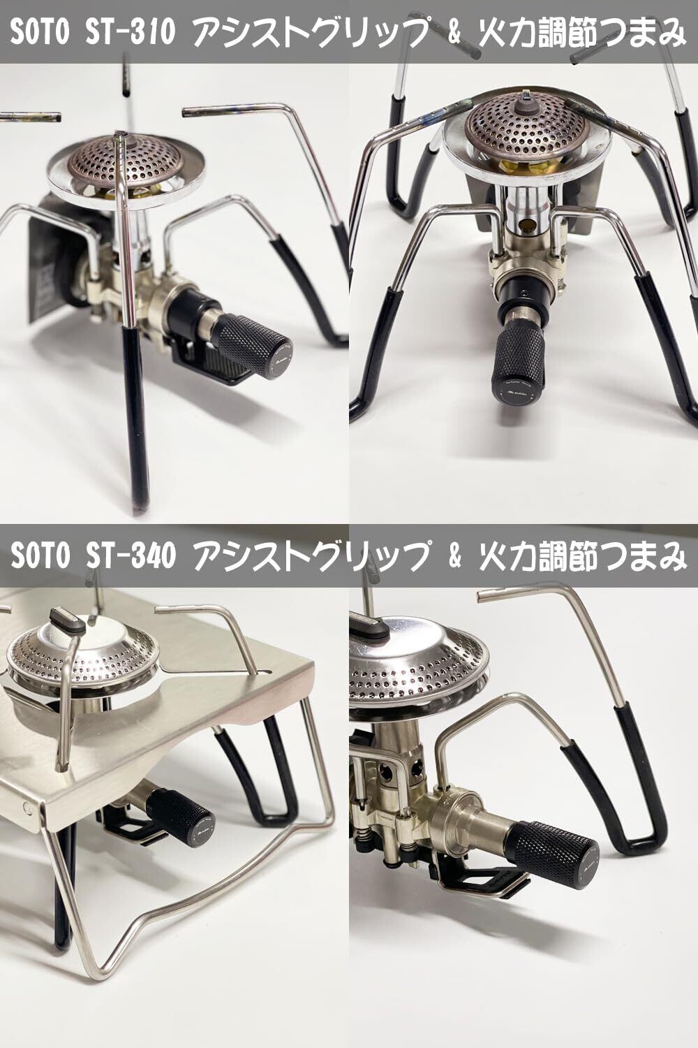 【耐熱シリコンチューブ】SOTO ソト レギュレーターストーブ ST-340 & ST-310 アシストグリップ代用。ゴトクのスベリ止めと伝導熱をカバーするアシストグリップ。アシストグリップはST-310 & ST-340の脚に取付けることで、ゴトクのすべり止めや、ゴトクが熱くなったときのカバーになる。取付の際は五徳に石鹸水、又は食用油を少しつけて頂くと簡単に取付けできます