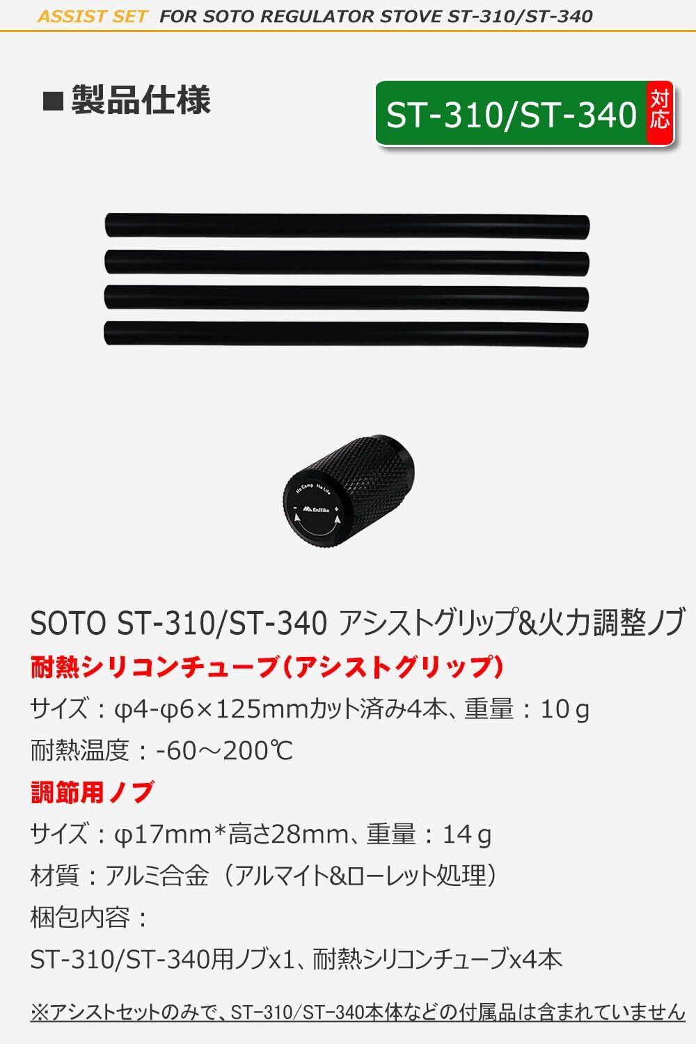 【SOTO ST310/ST340用アシスト二点セット】耐熱シリコンチューブ+火力調節ノブの二点セットです。耐熱シリコンチューブと火力調整ノブはsoto st310 & st340の必須アシストアクセサリーです