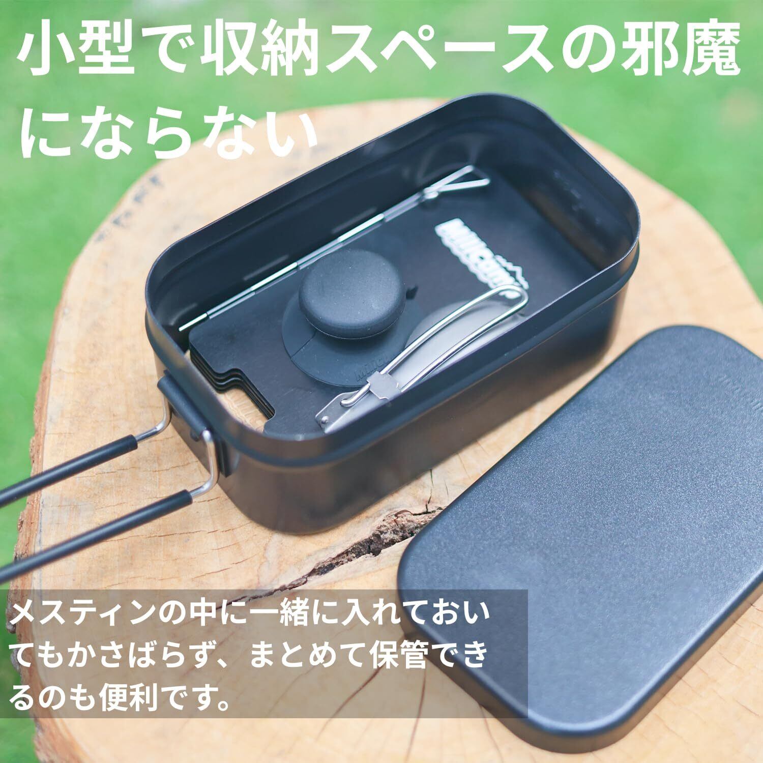 【小型で収納スペースの邪魔にならない】メスティンの中に一緒に入れておいてもかさばらず、まとめて保管できるのも便利です。コンパクトなので持ち運びにもまったく邪魔になりません。