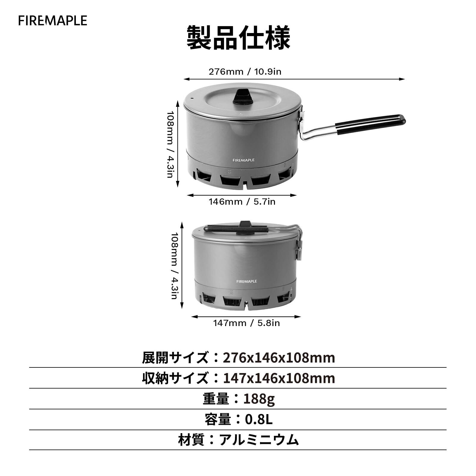 Fire-Maple キャンプポット 0.8L アルミニウム ヒートエクスチェンジャー ラーメン クッカー 鍋 コンパクト 軽量 蓋付き 登山 日帰り テント泊 アウトドア キャンプ用品 調理器具