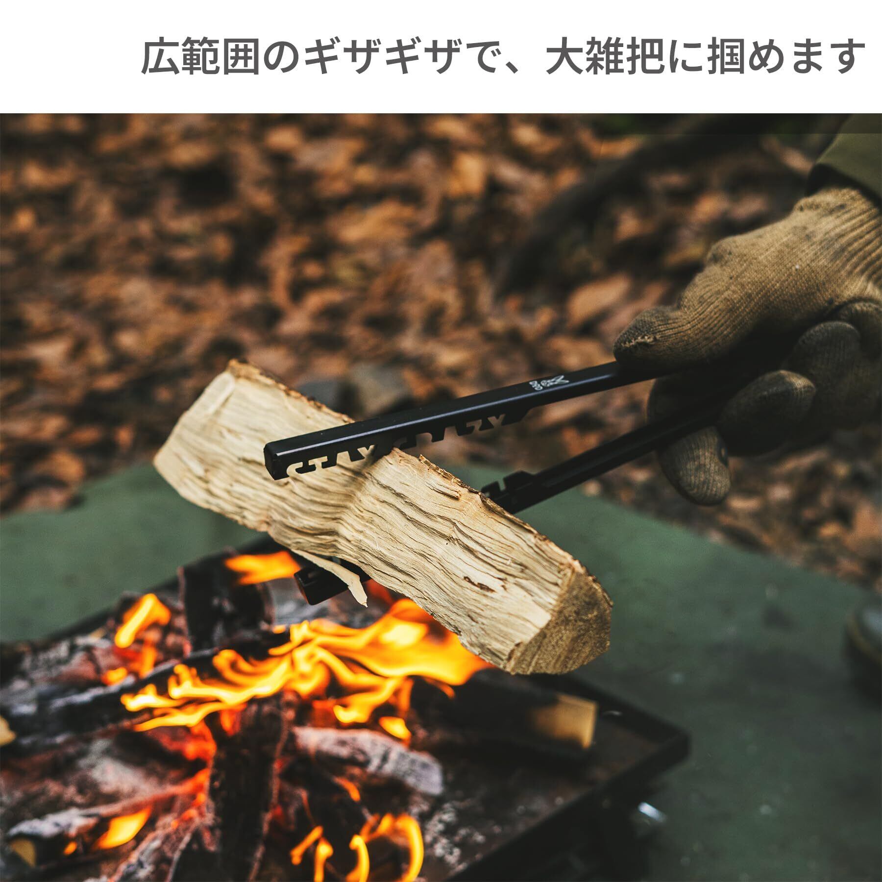 DODロゴでガッチリ掴むDODロゴを2つに分けたら、ギザギザがちょうど良い感じで、炭や薪が掴みやすい。細かいものも掴みやすい先端に平面があるので、小枝などの小さなものもピンポイントで掴めます。リフターとしても使える熱いケトルを持ち上げたり、クッカーのフタを開けたりできます。キャリーバッグ付き汚れを気にせず収納出来ます。
