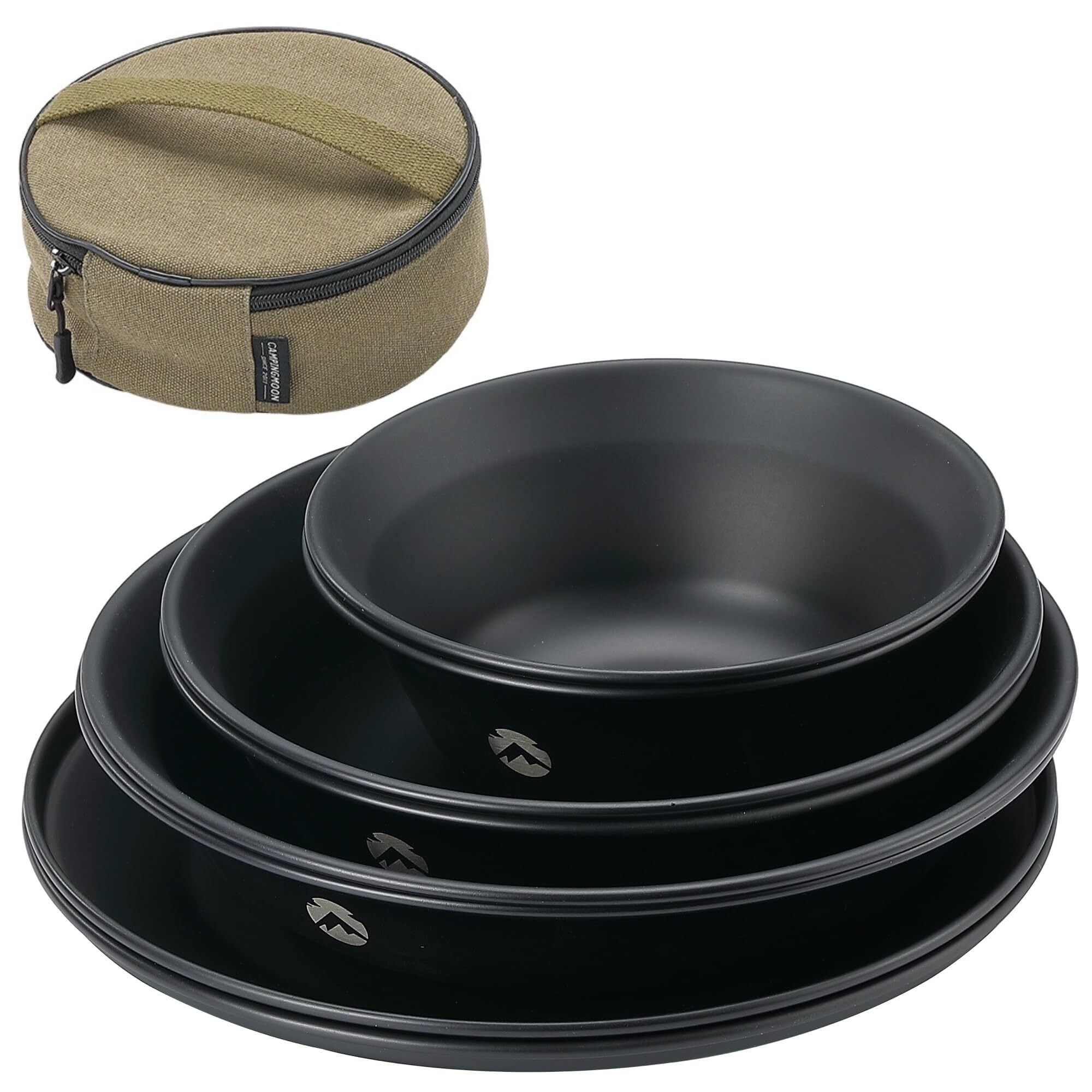 キャンピングムーン(CAMPING MOON) テーブルウェア キャンプ プレート ステンレス 食器 セット 帆布ケース付き 黒 BKS395