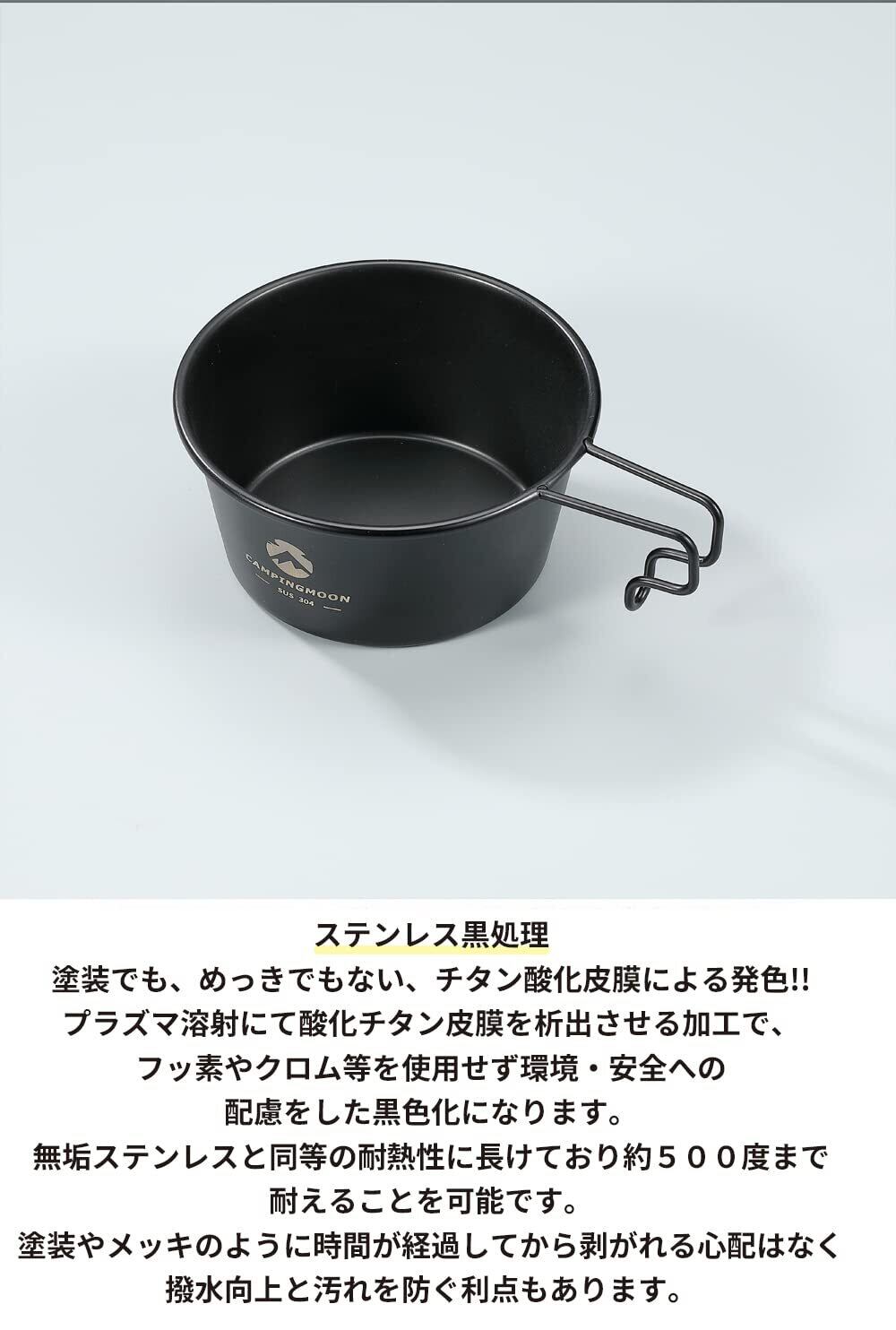 キャンピングムーン(CAMPING MOON) キャンプ用 コップ ステンレス シェラカップ 黒 深型 黒シェラ 360ml 2点セット BKS-360-2P