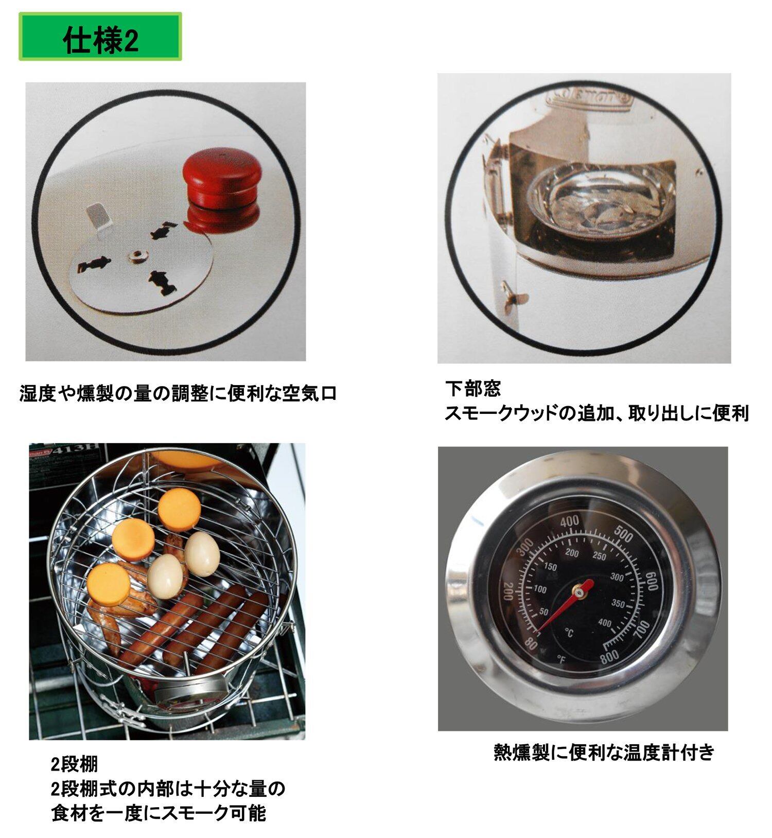 丈夫なステンレス製の熱燻製にも対応した本格スモーカー
