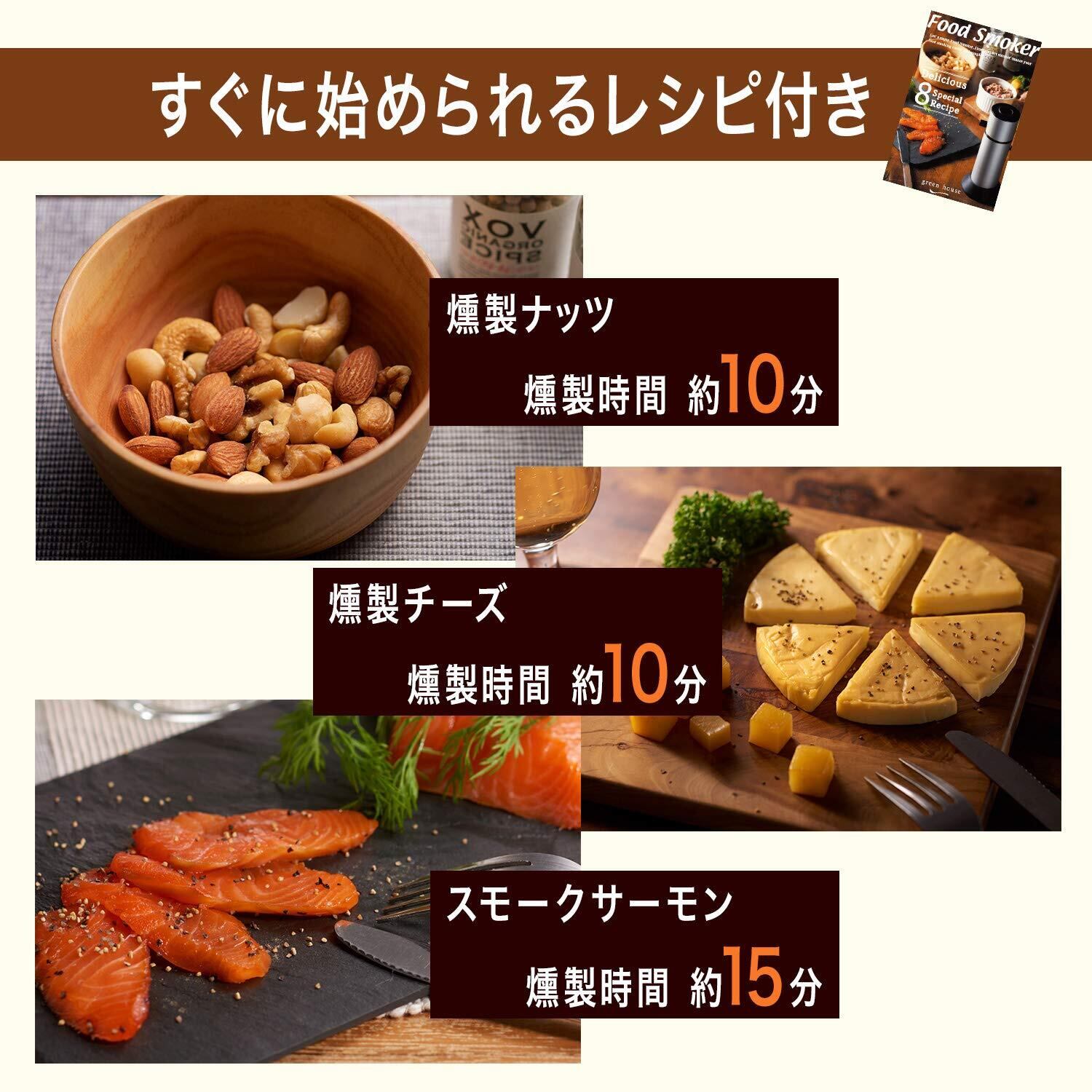 グリーンハウス フードスモーカー 簡単に時短燻製 すぐに使えるスモークチップ3種 レシピブック付 GH-SMKAA-SV